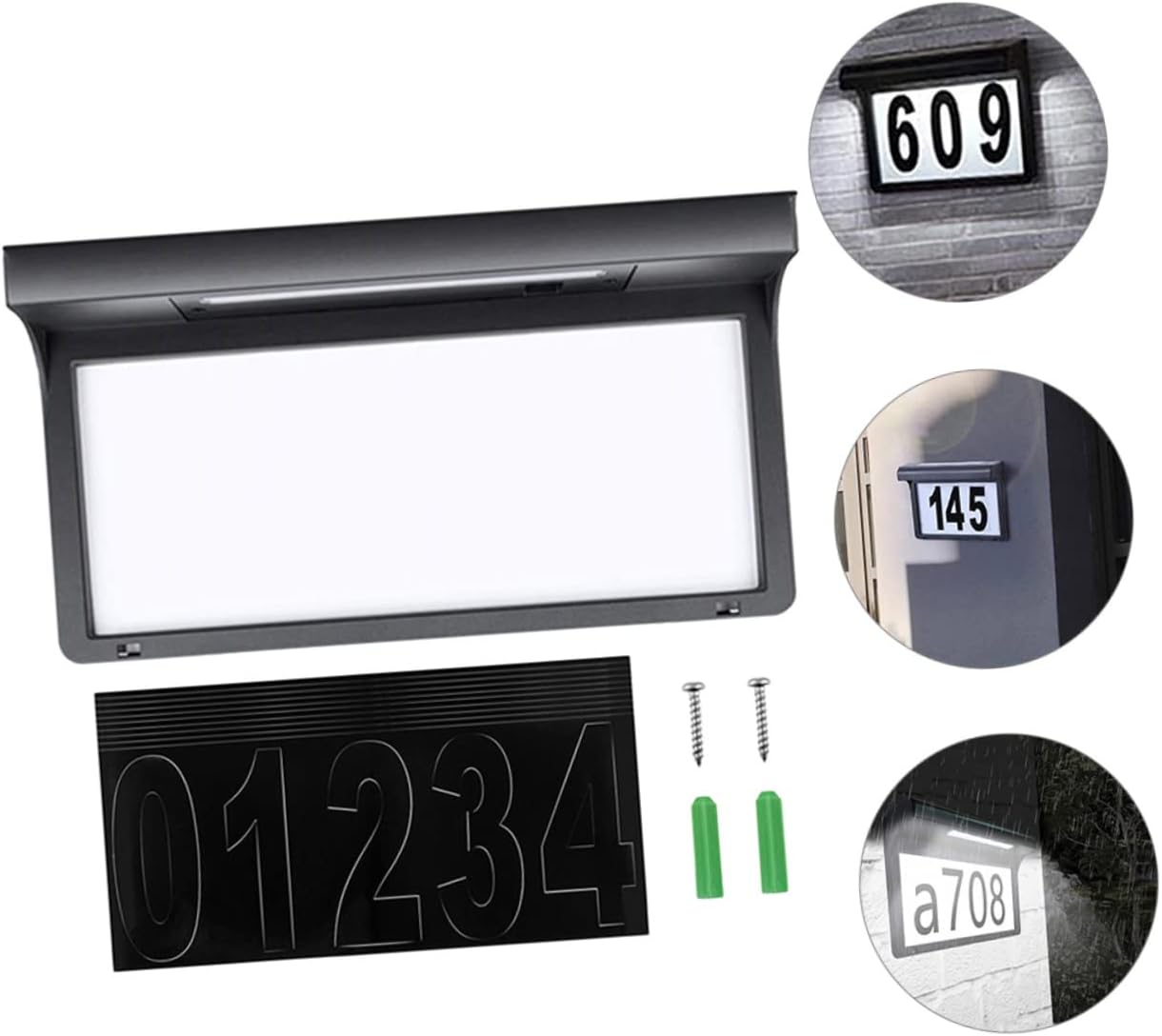 Package Include 1 x Solar Address Sign Light 3 x Sets of Numbers 1-9 1 x Set of Letters 1 x Set of Mounting Accessories Characteristics -Size:22.50X17.50X5.00cm/8.84X6.88X1 house numbers for outside light up. - Number of lamp beads: 6 LED solar house numbers - Protection level: IP55 solar house numbers for outside -Color:Black address numbers -Material: Polysilicon, plastic lighted house numbers - Battery capacity: 1 address signs for houses. - Control method: light control control light up house numbers for outside - Working hours: 8-10 hours address sign - Solar board: 5V/100MA lighted house numbers for outside - Color temperature: 6000K house signs for outside - This lighted house address numbers sign can provide excellent brightness and large illumination coverage solar address signs for houses. - The solar sign light is easy to use and install, suitable for the wall of patio, garden, yard, porch, pathway and so on solar address light. - Solar lighted house number sign is the choice to illuminate your house number after dark lighted address signs for houses. - The solar lighted house number sign is modern and classic, which will be your for yard wall connection illuminated house numbers.Goods Descriptionhouse numbers for outside light up Minimalist look, convenient and practical, solar lighted house number sign is personality for you DIY your address numbers according your preference.house numbers for outside plaque And then install the solar address sign to wall, garage, door, fence, etc