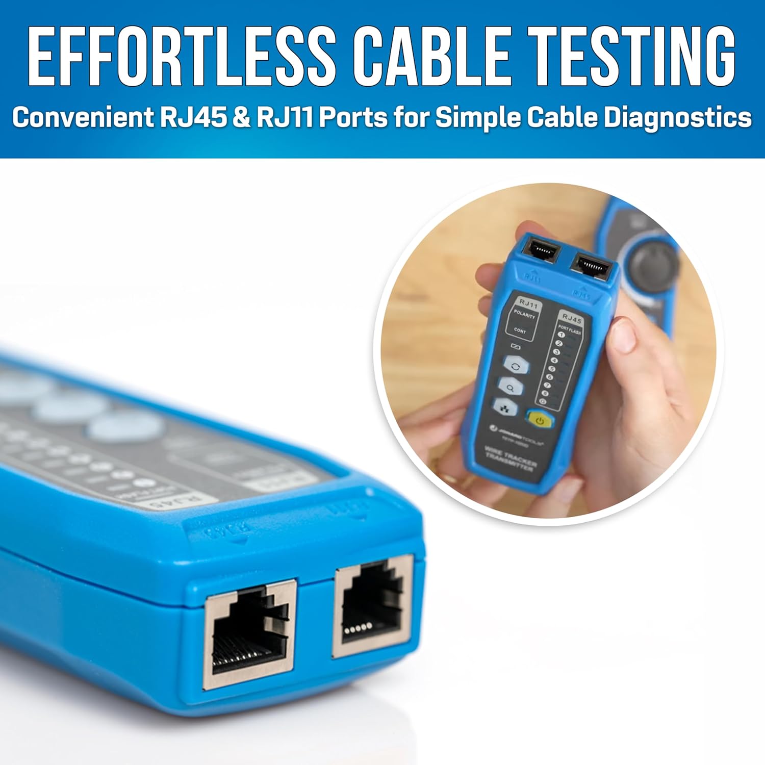 The TETP-1000D is the fastest and easiest way to locate, test, and verify hard-to-find network cables in busy patch panels, wire bundles, and network closets. Featuring an easy-to-identify isolated digital signal perfect for testing on live networks, eliminating the need for downtime to diagnose any issues. With a long-lasting rechargeable LI-Ion battery for nonstop service. Live Network and noisy signal testing with isolated digital tone generator Rechargeable Li-ION battery with USB-C Built in Continuity and Polarity testing displayed on easy to read LEDs plus POE verification Rugged alligator clip for testing bare wires RJ45 and RJ11 Ports for easy testing of RJ45, RJ11, and RJ12 Cables