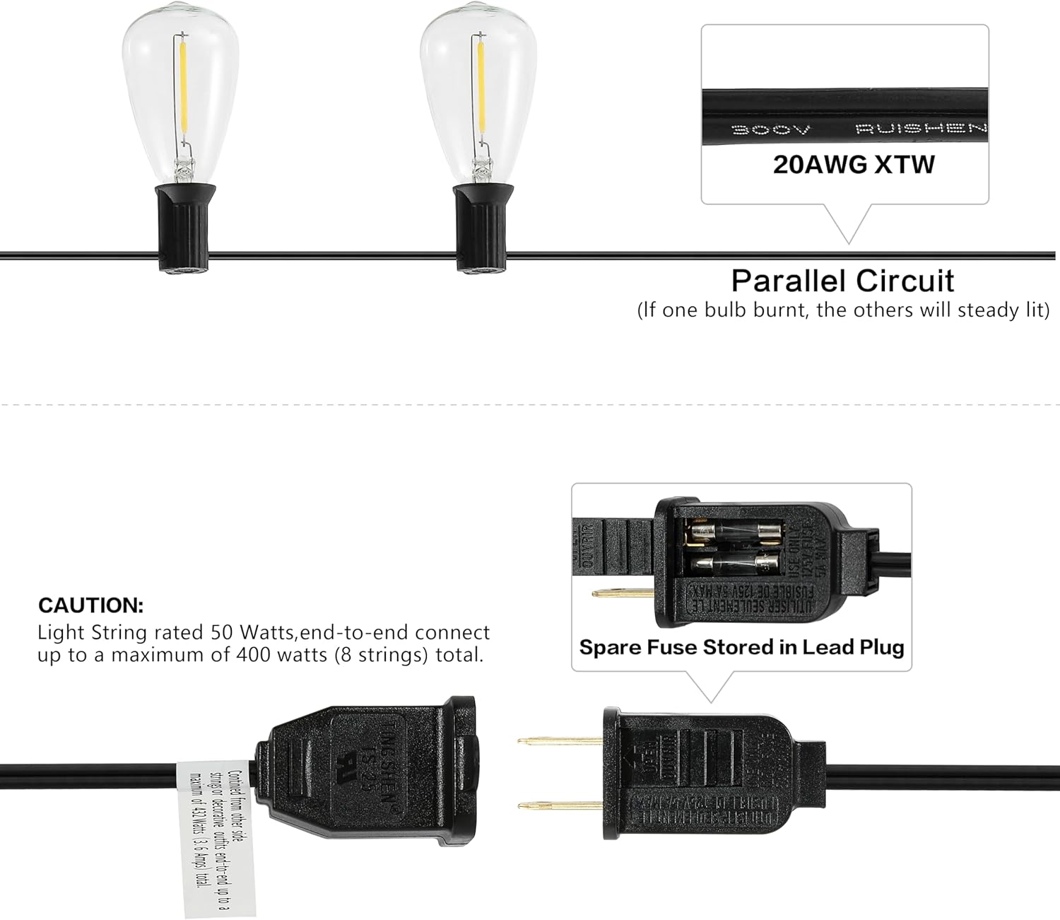 Add instant lighting to your patio, deck or balcony with our Outdoor Lights; 10 bulbs are spaced 12" apart along a 10' cord. Clear bulbs on a wire allow for bright direct lighting. Use with a dimmer for soft lighting at a wedding, party, or camping. Heavy duty sockets stand up to rain and wind. Leave them up all summer for entertaining outside, or keep them up all year in mild climates.