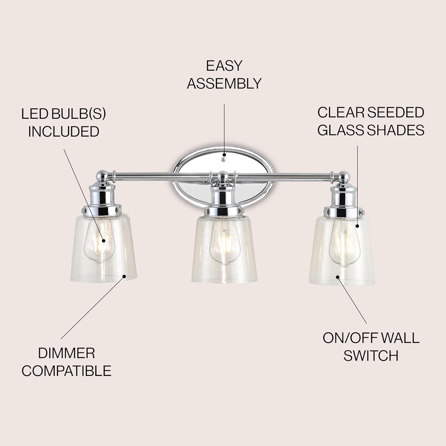 Elevate your urban apartment, cottage or rustic with our versatile take on a classic wall light. The industrial Edison-style LED bulb casts a warm glow, providing plenty of light. A seeded glass bell shade adds elegant vintage style to your bath vanity, or above a kitchen sink.