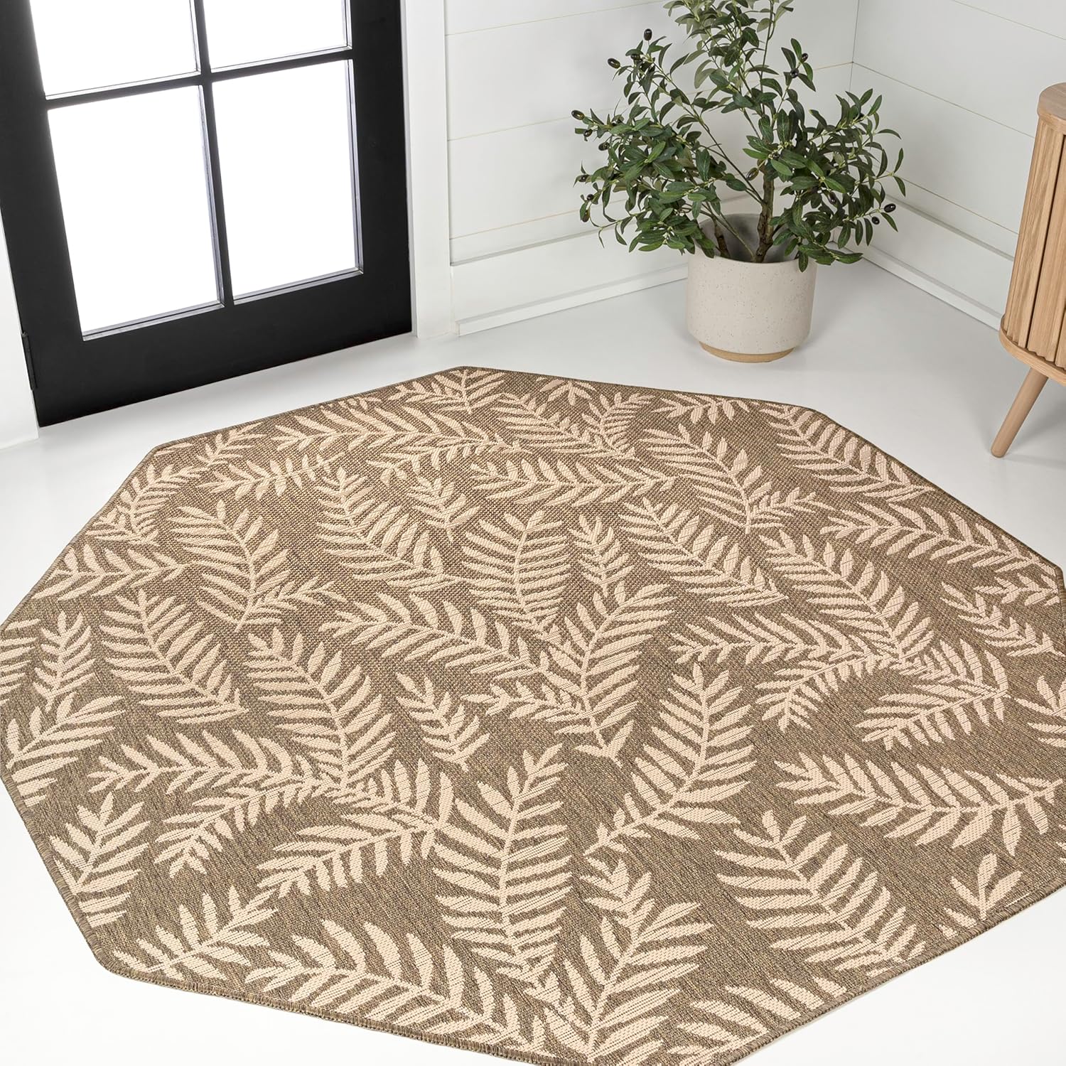 Model Name Nevis Palm Frond Indoor/Outdoor Area Rug, Floral,EasyCleaning,ForHighTraffic,Kitchen,LivingRoom,Backyard, Non Shedding