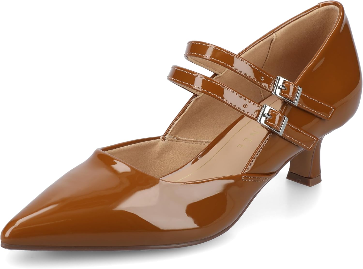 The Carnation Mary Jane pump by Journee carries you through a busy and productive day. Its sleek faux leather and multi-strap design add elegance to every step. The pointed-toe gives you a polished look at the office, while the 4mm Journee Comfort System Insole keeps you comfortable from morning meetings to evening out.