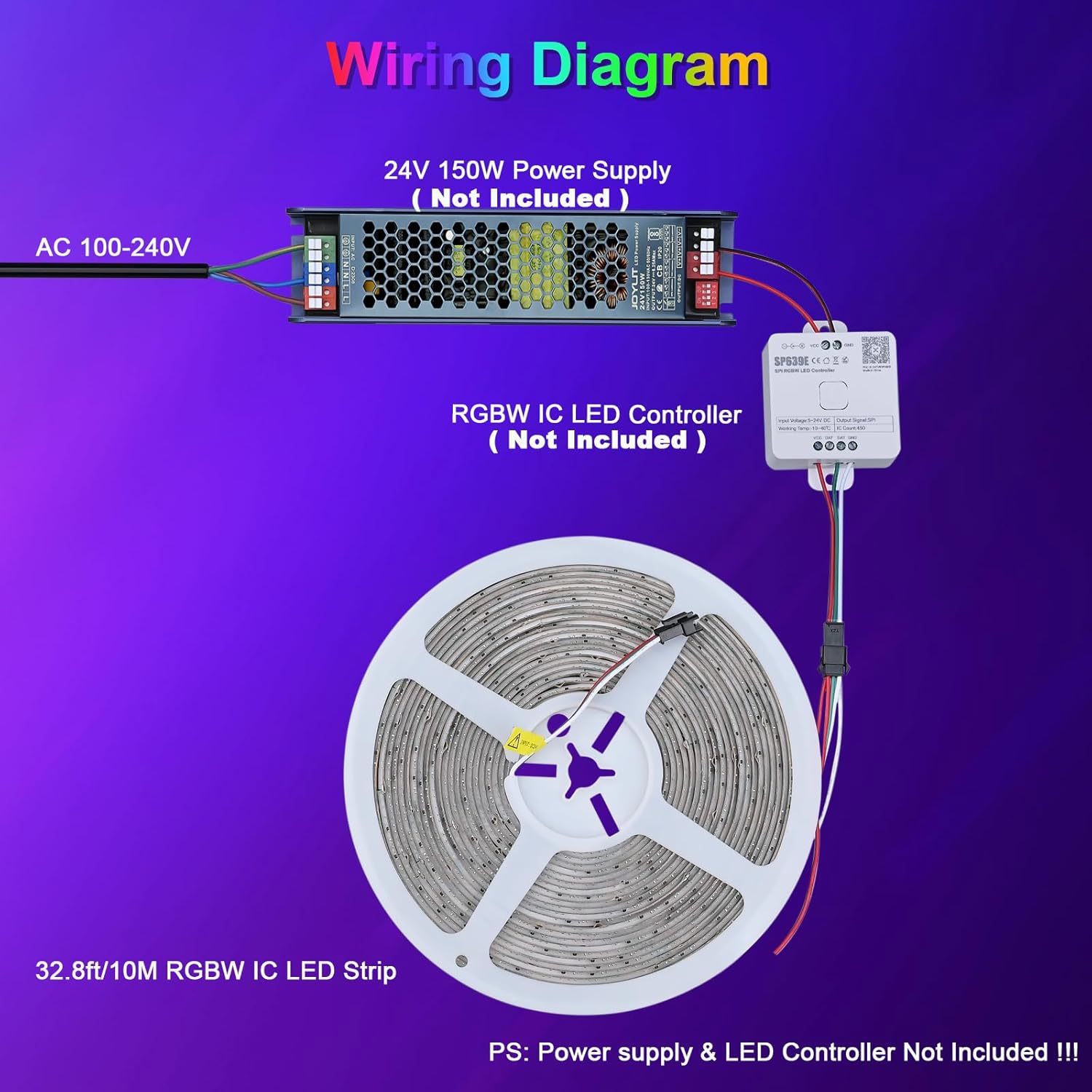 Transform Your Space with This Digital SPI LED Strip Welcome to the future of LED lighting. The JOYLIT 24V COB RGBWIC LED Strip combines cutting-edge technology with user-friendly design to deliver unparalleled lighting flexibility and quality for your home or business. ✨ Unmatched Light Quality & Visual Comfort Tired of the cheap, dotted look of ordinary LED strips? Our COB (Chip-on-Board) technology is the game-changer. It uses 7840LEDs on this 32.8FT LED strip. The result is a continuous, smooth “light line” that eliminates harsh spots and glare, providing a premium, diffused light perfect for creating ambiance without eye strain. ✨ Your All-in-One Lighting Solution Why buy multiple LED strips for different needs? This intelligent pixel light strip integrates two lighting worlds: 🎨 White Spectrum: Dial in the perfect white light for daily illuminatin. 🎨Dynamic RGB Color Chasing Effects Light Strip: Unleash your creativity with millions of RGB colors. Use the included WS2811 IC chip (compatible with many popular controllers) to enable stunning color-chasing, fading, water running and fixed-color effects for holidays, parties, or gaming setups. Control it all with a compatible spi led controller ( RGBW SPI LED Controllerr ) by RF remote, smartphone app, or voice assistant (via smart hub) to set the perfect mood in seconds. Engineered for Large-Scale, Flawless Projects Planning a long run of light? Our 24V high-efficiency design ensures stable current delivery over the full 32..8ft length. Say goodbye to the common issue of the tail end of the strip appearing dim or yellowed (“voltage drop”). Enjoy consistent, vibrant color and brightness from the first inch to the last. Designed for a Perfect Installation Experience We believe great lighting should be easy. The strip can be cut safely with scissors at the clearly marked cut lines (7CM/2.7IN) to fit your exact space. The industrial-strength 3M adhesive backing is ready to use—just peel and press onto a clean, dry surface for a secure hold that lasts. Specifications: Voltage: 24V DC LEDs: 784LEDs/m Color: RGBWIC ( RGB solid color, Pure white, millions DIY color ) IP Rating: IP20 Non Waterproof Length: 32.8ft/10M per reel, cuttable every 2.7in/7cm Adhesive: strong adhesion self-adhesive backing pre-attached Controller : RGBWIC SPI controller compatible (not included) Ideas for Use: Home Theater & Gaming Setups Kitchen Under-Cabinet Lighting Bar & Restaurant Ambiance Wedding & Event Backdrops Retail Display & Signage What You Need to Know Before Purchase To Complete Your Kit: This listing is for the wled rgbwic LED strip light ONLY. A 24V DC power supply (adapter) and an RGBWIC controller are REQUIRED for operation. Recommendations based on your project length. Application: Designed for INDOOR USE in dry locations only (e.g., living rooms, bedrooms, kitchens, cabinets, shelves, display cases). Not suitable for bathrooms, outdoors, or areas with direct moisture.