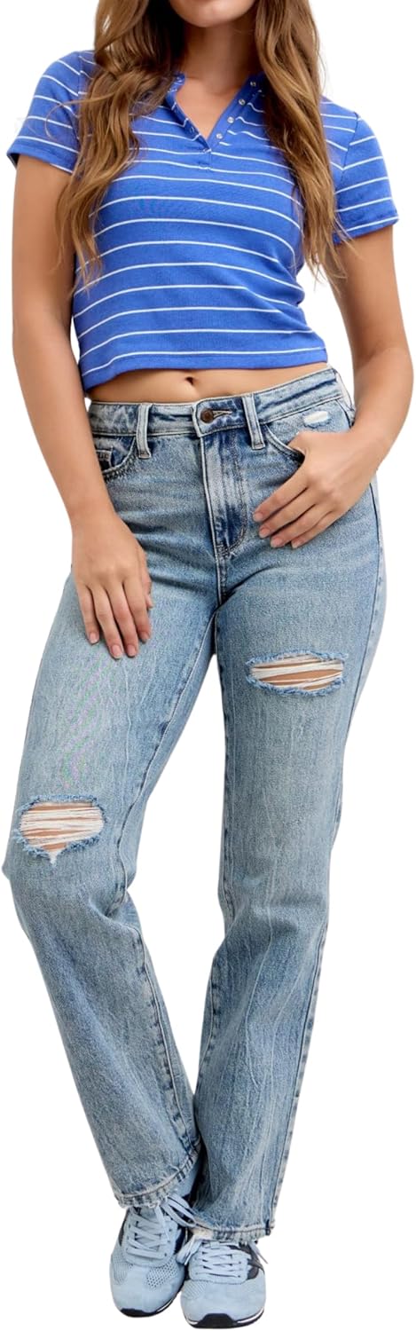 | Style Name | Judy Blue High Waist Light Wash Rigid Magic Slim Straight Jeans, Inseam 32" |
