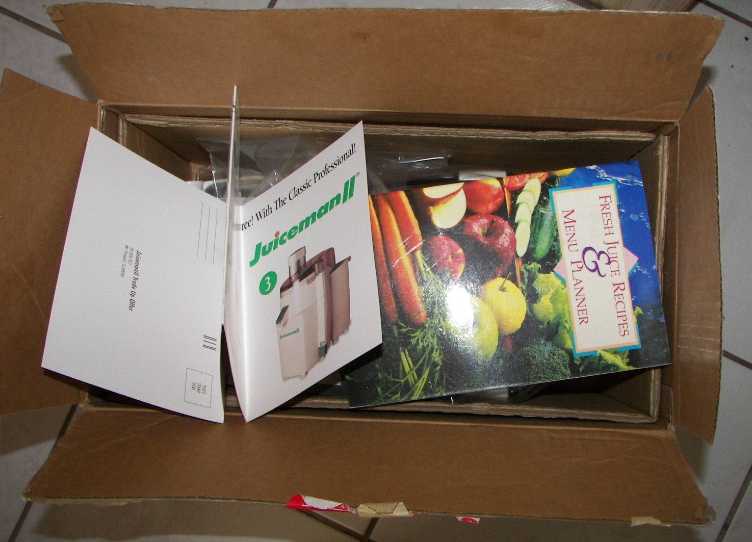 Product Description Getting 5 servings of fruits and vegetables each day is a little easier with the Juiceman Jr. juice extractor. Stainless steel blades and a high-tech, micro-mesh basket make pulp-free juice any time of day. Even juices rinds, stems and seeds (yes, some of these are actually good for you and taste good, too). Features a clear, high-impact dome. Snap-apart components for easy cleanup and reassembly. Comes with food plunger, large pulp receptacle, audio cassette with juicing tips, and a fresh juice recipe book and menu planner. Imported. 12Hx16Wx8D". Amazon.com For the diehard health nut looking to vary fruit and vegetable intake or a family seeking the perfect orange juice to accompany Sunday brunch, the Juiceman Jr. automatic juice extractor provides an easy way to bring freshness to the table. This 410-watt household model supports frequent use and can hold its own with a .25 horsepower motor. Two-speed capability targets soft and hard foods respectively. Roughly cut fruits and vegetables to fit in the tube-like opening and evenly compress with accompanying pusher. An 18/10 stainless steel blade pulverizes the produce while a wire-mesh basket neatly separates pulp, seeds, and skin from liquid. A large capacity pulp receptacle permits continuous juicing and can be lined with a plastic grocery bag for easy cleaning. Spraying is prevented with a protective plastic shield and washing is simplified with easily extractable parts. Safety features include a double interlock system to ensure lid is secure before juicing begins and an accompanying pusher to guide oversized produce while keeping fingers at a safe distance. At 11-1/2 by 13 by 6 inches this appliance wont dominate your countertop and comes with a one-year warranty. Fresh juice recipes, nutritional information, and a menu planner are included. --Amy Arnold
