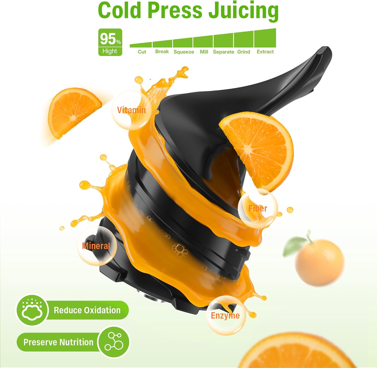 | Included Components | Cleaning Brush ×1 User Manual ×1, Food Pusher ×1, Juice Cup ×1, Pulp Container ×1, Slow Masticating Juicer ×1 |