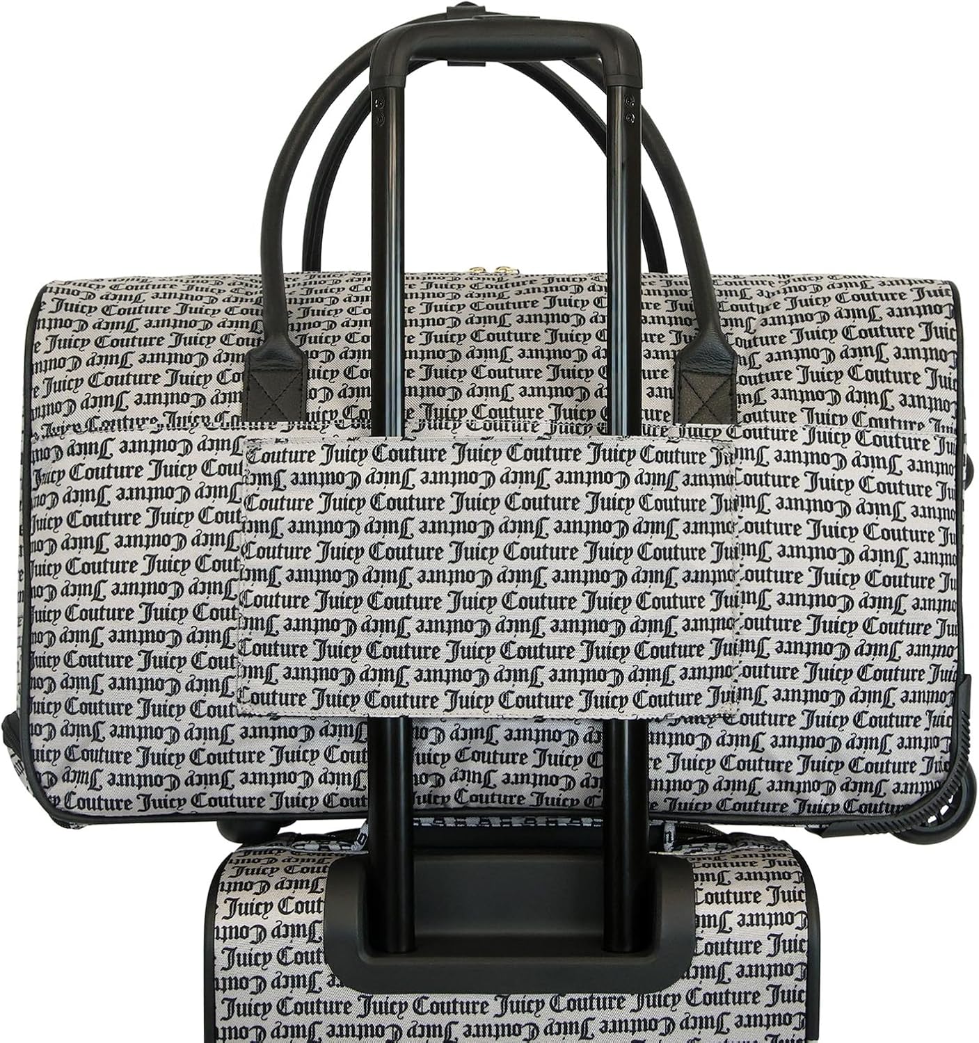 Elevate your travel experience with the fabulous Evelyn 3-piece set by Juicy Couture Designed for the fashion-forward traveler, this set seamlessly combines chic glamour with exceptional functionality. Equipped with smooth dual-spinner wheels for effortless maneuvering, a retractable push-button handle for easy height adjustments, and a durable polyester softside exterior, this luggage ensures your belongings stay secure while looking stylish. The set includes a 21-inch carry-on, a 29-inch check-in piece, and a 22" rolling duffel, offering plenty of room for all your travel essentials. Plus, each piece nests neatly within the other for space-efficient storage. Juicy Couture’s perfect blend of luxury and practicality makes this set the ultimate choice for those who demand more from their luggage.