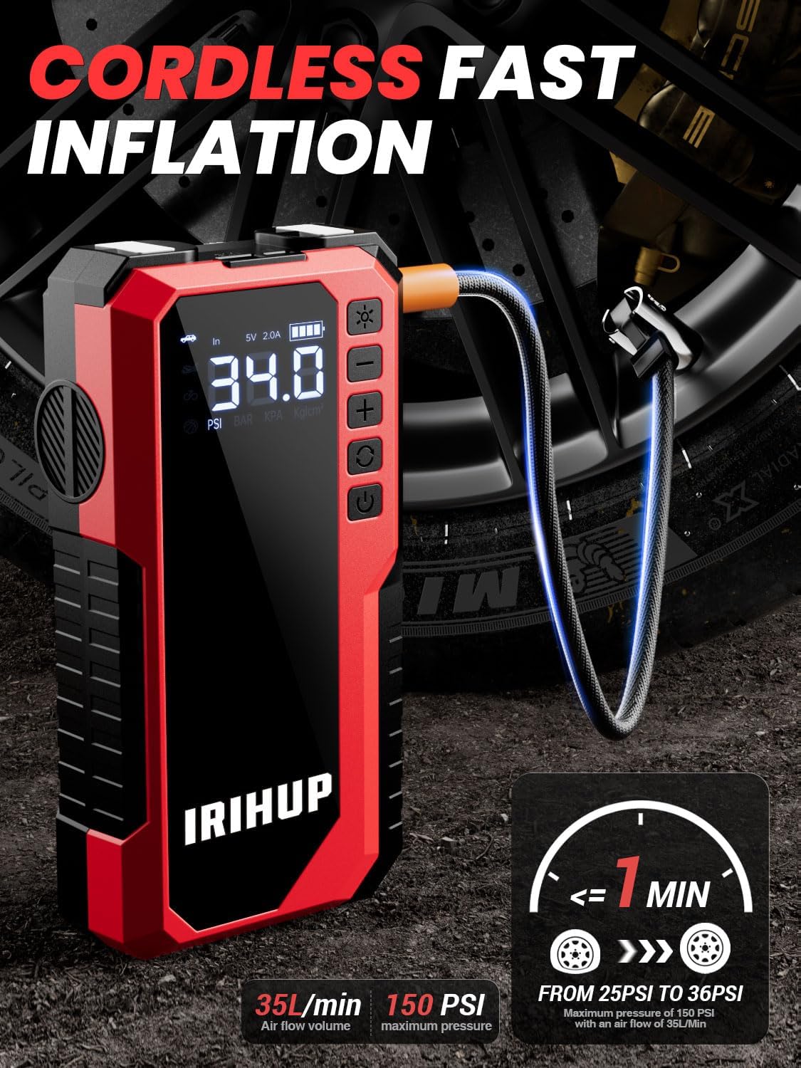 | Included Components | 1*HW300 Jump Starter with Air Compressor, 1*Smart Jumper Cable, 1*USB-C Cable, 1*User Manual; 1*EVA Bag, 4*Air Nozzles |
