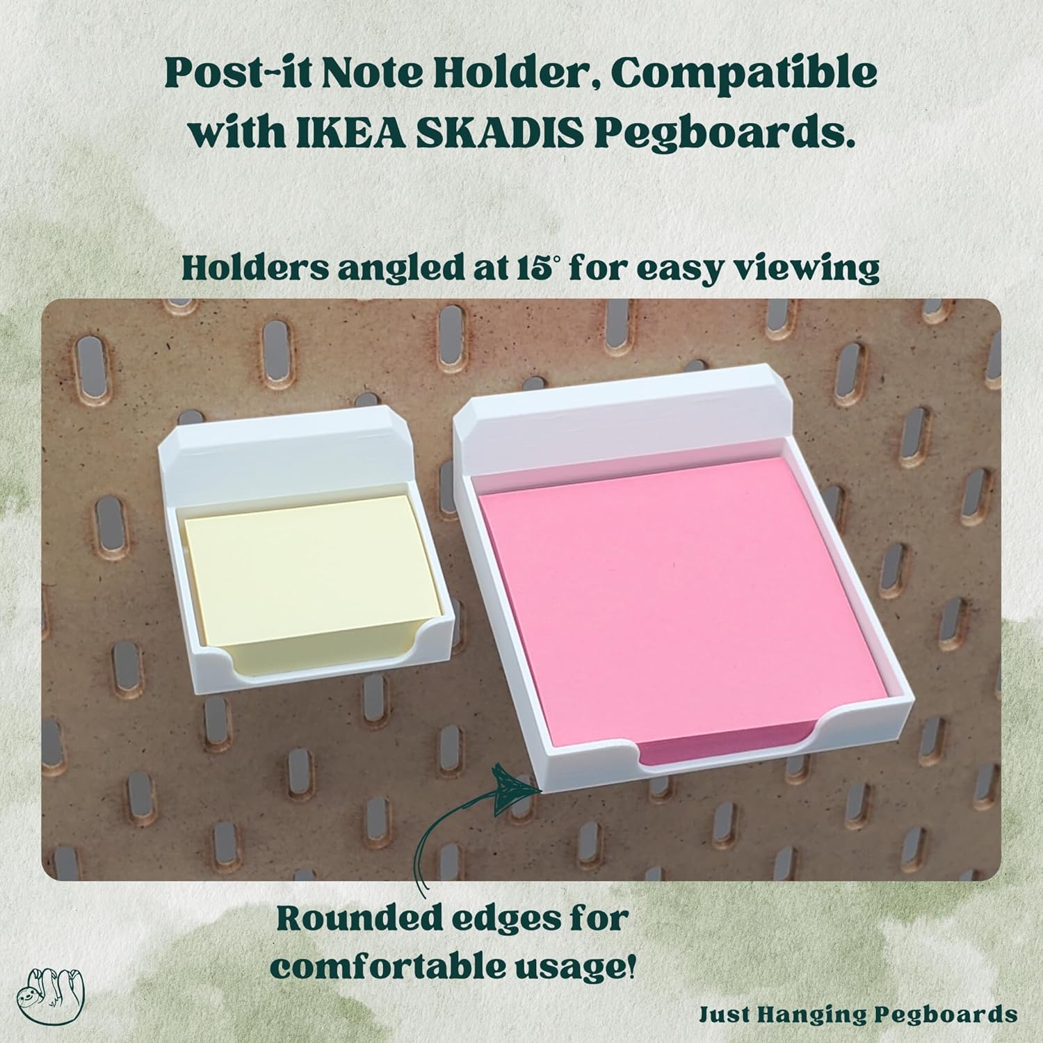 Keep your sticky notes right where you need them with this handy set of Holders compatible with Post-It notes from Just Hanging Pegboards — made to clip perfectly onto your IKEA SKADIS pegboard. Each set includes two custom-fit holders: one for standard 3x3" sticky notes, and one for smaller 2x1.5" notes. Whether you're jotting down reminders, planning a project, or organizing your craft space, these holders help keep your notes visible, accessible, and off your desk. Proudly made in the USA, they’re simple to install with no tools required — just snap them onto your SKADIS board and get organized. Perfect for home offices, classrooms, crafting stations, or anyone who loves a tidy workspace.