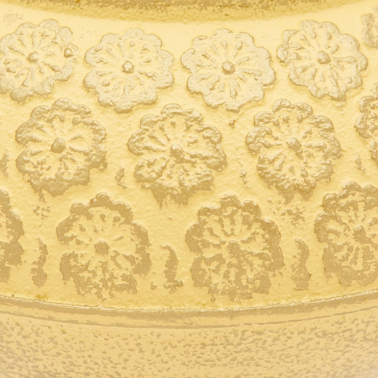The Juvale Japanese Cast Iron Teapot is a refined addition to the collection of any tea connoisseur. This elegantly designed tea pot set features a stainless-steel infuser and a floral trivet, making it ideal for enjoying loose leaf tea with precision and ease. Its striking yellow color, embellished with a delicate floral pattern, adds a touch of sophistication to any kitchen or dining space. As the weather transitions to cooler months, this teapot becomes an essential companion for indoor tea gatherings, providing warmth and comfort. Crafted from durable cast iron, this teapot ensures exceptional heat retention, maintaining the warmth of your tea for extended enjoyment. With a capacity of 800 ml (27 oz), it is perfect for serving up to four individuals, whether for a serene afternoon tea or a quiet evening of relaxation. The included stainless-steel infuser is adept at separating tea leaves, offering a smooth and flavorful tea experience. This teapot is particularly well-suited for brewing a variety of teas, including green, herbal, and detox blends. Designed for those who appreciate the art of tea preparation, the Juvale Japanese Teapot is not intended for use on a stovetop. It is recommended for use with pre-heated water from a separate source, promoting safe and effective brewing. The ergonomic fold-down handle and curved spout provide a comfortable grip and precise pouring, enhancing the overall tea-making ritual. For maintenance, simply rinse the cast iron teapot with warm, clean water after use, avoiding detergents or dish soap to preserve its quality. This tea pot set includes a cast iron teapot, a stainless-steel infuser, and an elegant floral trivet. It serves not only as a practical kitchen accessory but also as a thoughtful gift for friends, family, or any tea enthusiast, embodying both style and functionality.
