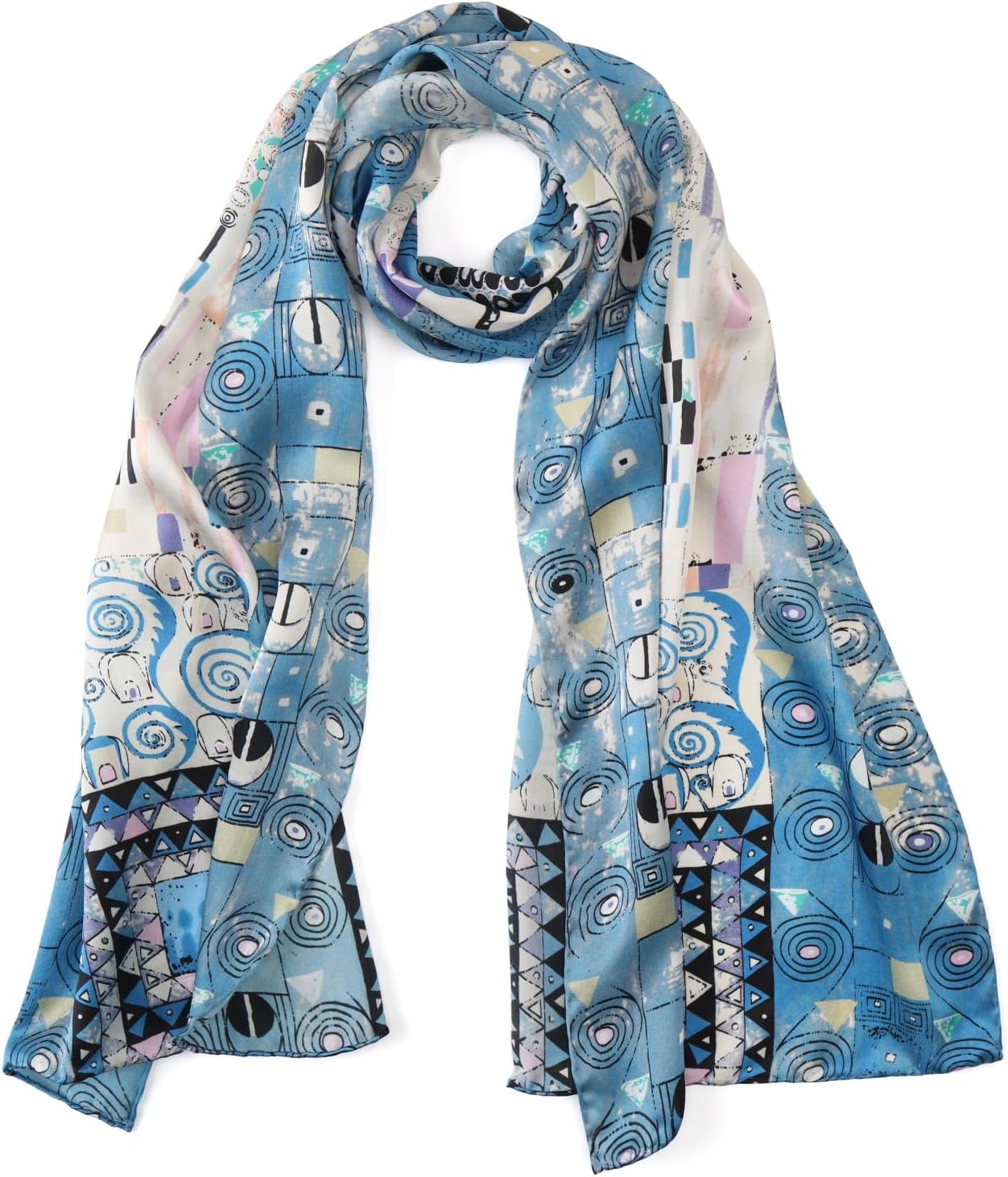 The high quality long charmeuse silk scarf is made of 100% mulberry silk. Printed with classic ast prints by world famous artists such as Van Hogh and Monet. . Nicely printed and the color effect is outstanding. Smooth and soft touch and feel. An elegant silk scarf as well as a beautiful artwork. Great for dressing up your outfits and perfect for gift .