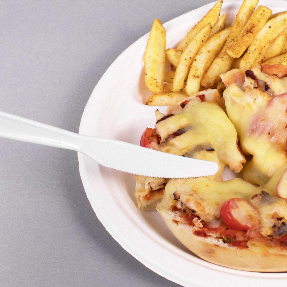 Karat extra-heavy weight knives are ideal for concession stands, cafes, or break rooms. Sold as a case with 10 bags of 100 knives for a total of 1,000 knives. These knives are 7.6” long . White color, made from extra-heavy weight polystyrene. A cost-effective solution for any take-out business.