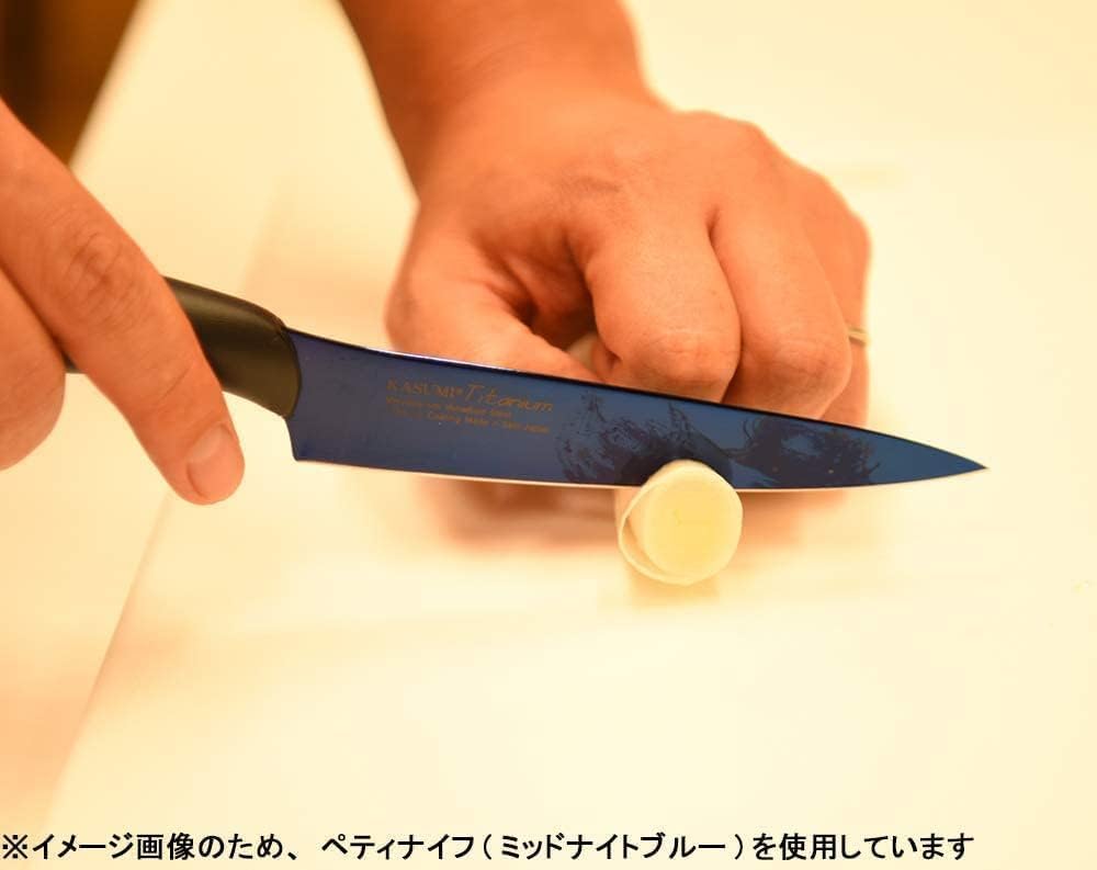 The Blade Is Manufactured In Molybdenum Vanadium Steel With 2 Colors Of Titanium Coating (Blue And Gold) A Material Affording The Sharpest Edge Possible By The Combination Of Steel And Titanium. The Outstanding Edge Of The Kasumi Titanium Coated Blade Has Been Achieved By Combining The Best Of Advanced Technology With The Unsurpassed Knowledge And Expertise Of The Craftsmen Making These Professional Kitchen Knives. Their Skills Have Been Cultivated In The Traditional Japanese Techniques Of Sword Making, Handed Down From Generation To Generation For Over 780 Years In The Capital Of Swords And Knives, Seki, Japan.