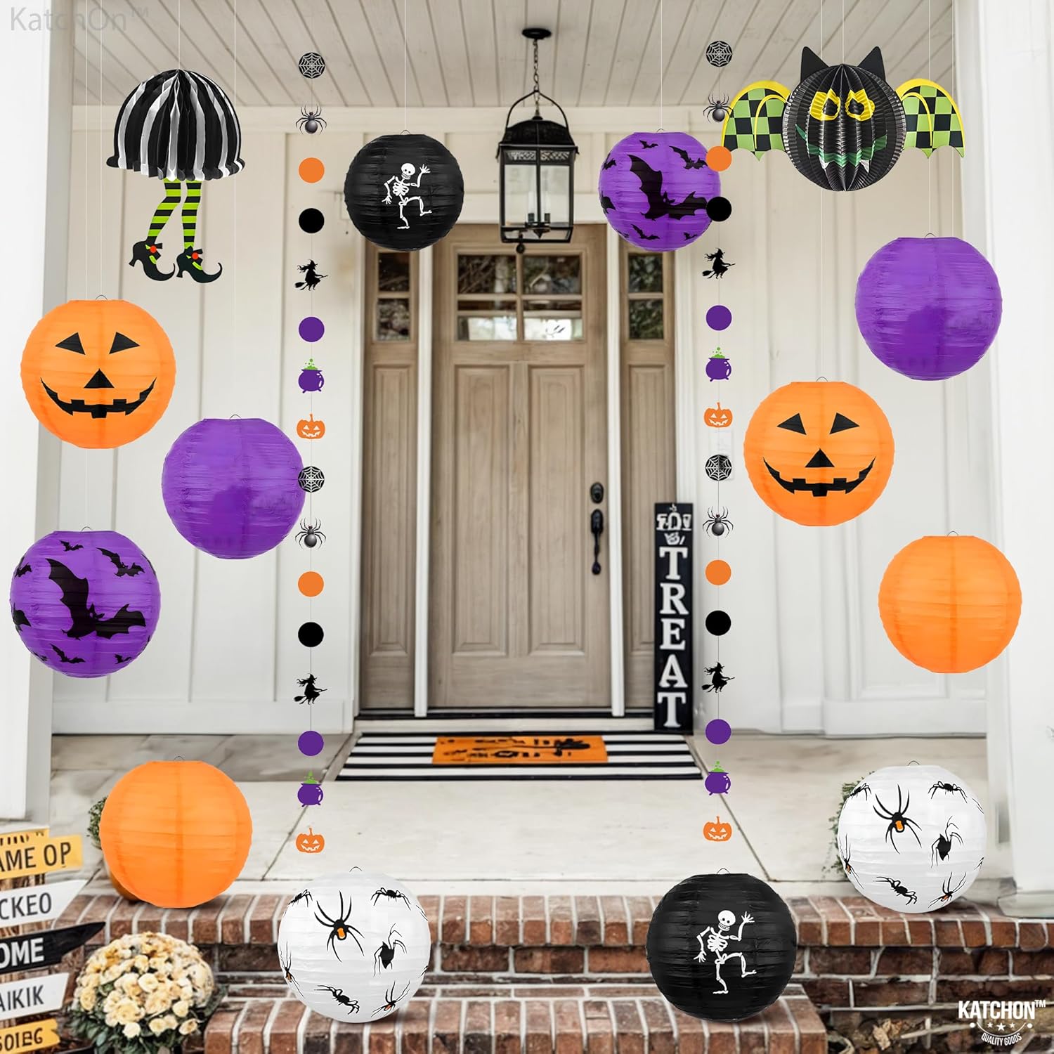Are you planning to get kids’ Halloween party hanging decorations? Or looking for something wonderful to decorate your child’s Halloween birthday party? This Halloween-themed birthday party decoration set is the perfect choice! Its vibrant colors make it ideal for adding a fun and festive atmosphere to any Halloween celebration. Create a spooky yet cheerful party scene that everyone will remember. Our Halloween birthday decorations are designed to add a burst of color and excitement to your celebration, making it a truly memorable occasion. What you will get: Halloween Happy Birthday Banner Garland – 2 strings, 10 feet Orange and Black Dot Garland – 13 feet Purple, Orange, and Black Triangle Garland – 16.5 feet Halloween-Themed Cutouts – Pack of 6 Halloween Hanging Swirl Decorations – Pack of 12 Halloween Paper Fans – Pack of 12 Halloween Pompoms – Pack of 2 These decorations make a lovely centerpiece for any Halloween birthday setup that both kids and adults will love. Suggested Uses: Halloween decorations for kids’ parties First Halloween birthday decorations Halloween-themed birthday parties Kids’ Halloween party décor Happy Halloween birthday banners Orange and black Halloween decorations Halloween paper fans and hanging swirls for ceilings Ghost and pumpkin indoor decorations Scary yet cute indoor Halloween décor Halloween centerpieces and table decorations Add a fun yet spooky touch to your home or party venue with these vibrant Halloween decorations!