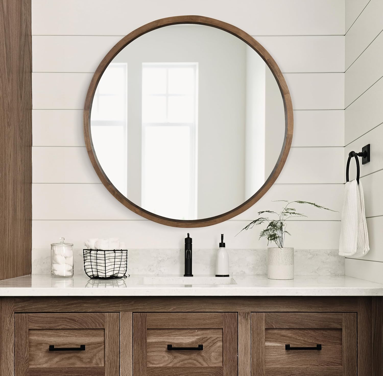 • Stunning Mirror Size: Measuring 30 inches in diameter, this mirror features a deep inset glass surrounded by a 2-inch wooden frame with a .75 inch profile
