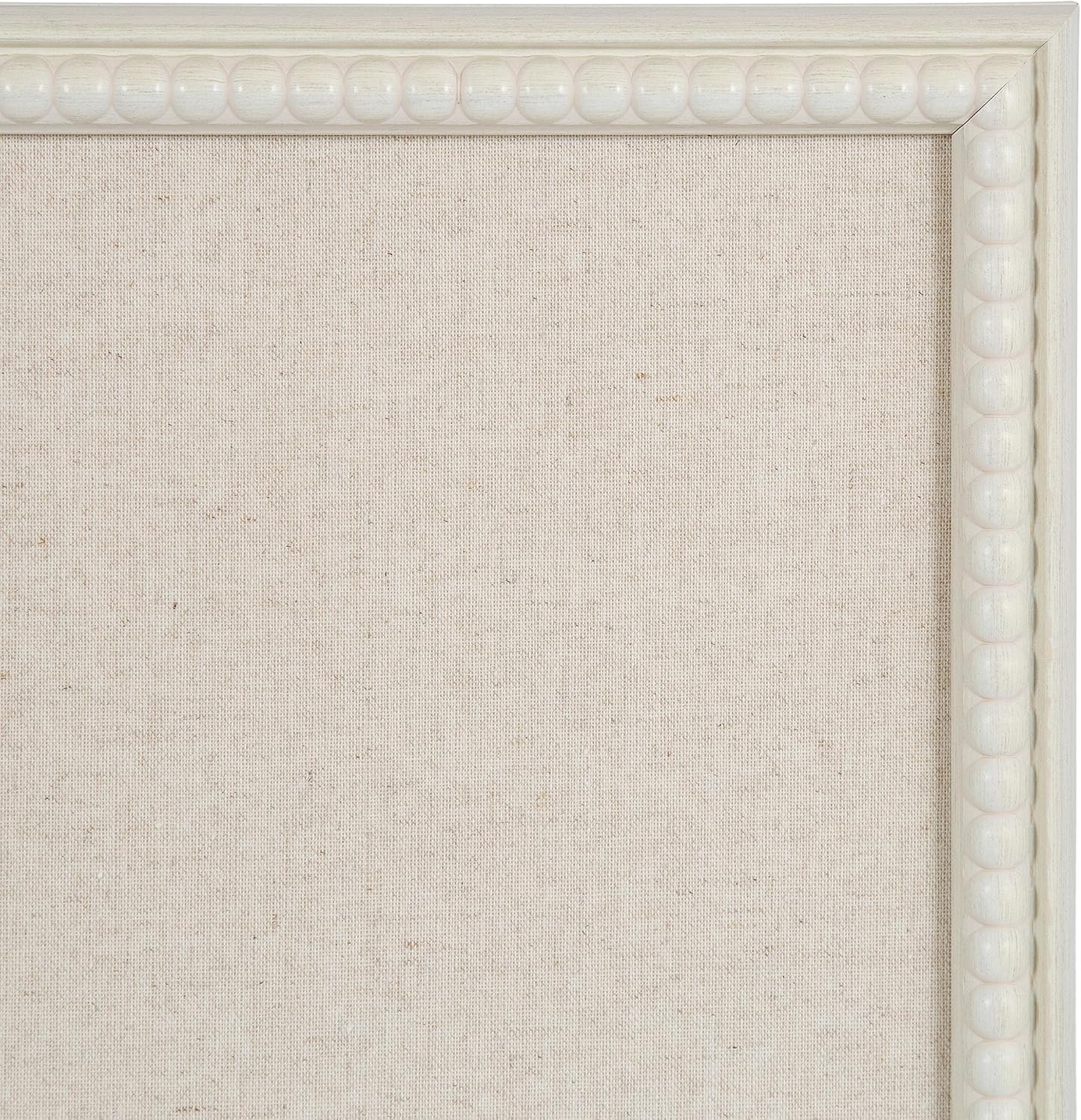 Introducing the Kate and Laurel Makenna fabric pinboard, the perfect combination of function and style for your home or office. The pinboard is made with a high-quality linen fabric that is durable and perfect for holding notes, photos, and other important documents. The beaded frame and soft white finish add a touch of elegance and sophistication, making this pinboard perfect for vintage-inspired or traditional home decor. Use it to organize your to-do lists, keep important papers in one place, or create an aspirational vision board to help you achieve your goals. With the attached metal D-ring hangers, the Makenna bulletin board is easy to install vertically or horizontally on any wall in your home or office. The pinboard measures 24 inches wide by 36 inches high and features a soft white frame that complements any decor. Whether you're looking to organize your space or add a stylish touch to your decor, this pinboard is the perfect choice. Invest in this stylish pinboard today and take the first step towards a more organized and inspired life.