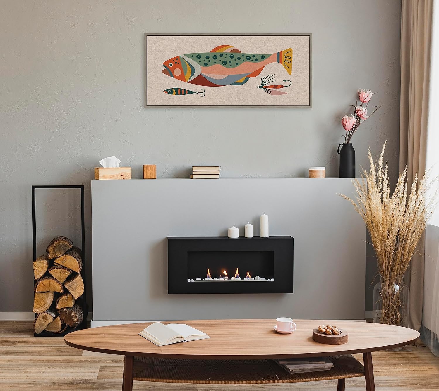 Brighten up your living space with this colorful fish illustration by Rachel Lee of My Dream Wall. Perfect for adding a splash of color and personality to any room in your home, this print is sure to become a beloved element of your home decor. Framed in the USA in Waunakee, Wisconsin, this modern floating canvas art is sure to bring joy to your space. Our design team curates art that will fit perfectly in any room of your home. Showcase this art in your living room, bedroom, home office, kitchen, bathroom, nursery, or anywhere you want to bring a little beauty and charm to your walls. Specializing in home décor, we are continually bringing timeless works of art for the traditional decorator as well as trend-forward pieces for that eclectic art lover. Our high-quality framed canvas art also makes excellent gifts for birthdays, holidays, or housewarming parties. Printed on gallery-wrapped canvas and framed with a simple gallery frame this wall art is easy to display on the wall and will match with any décor style. The outer dimensions are 18 inches by 40 inches by 1.6 inches. Print Name: “Gone Fishing Neutral Linen Texture”