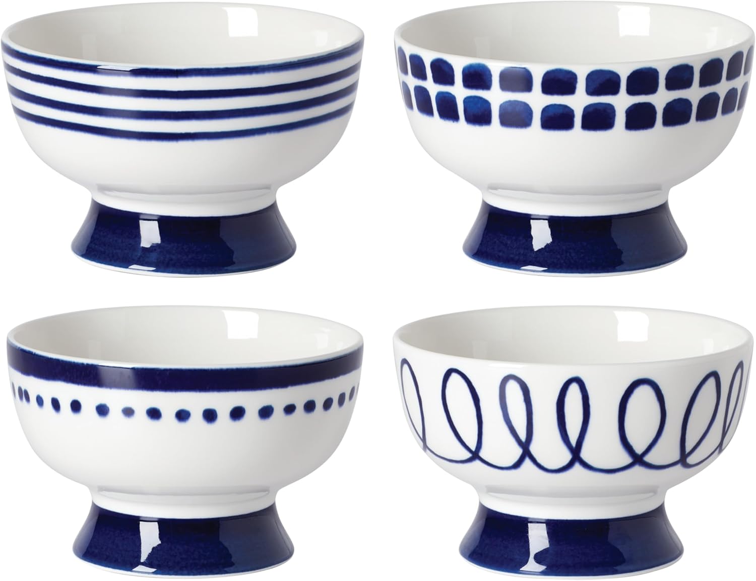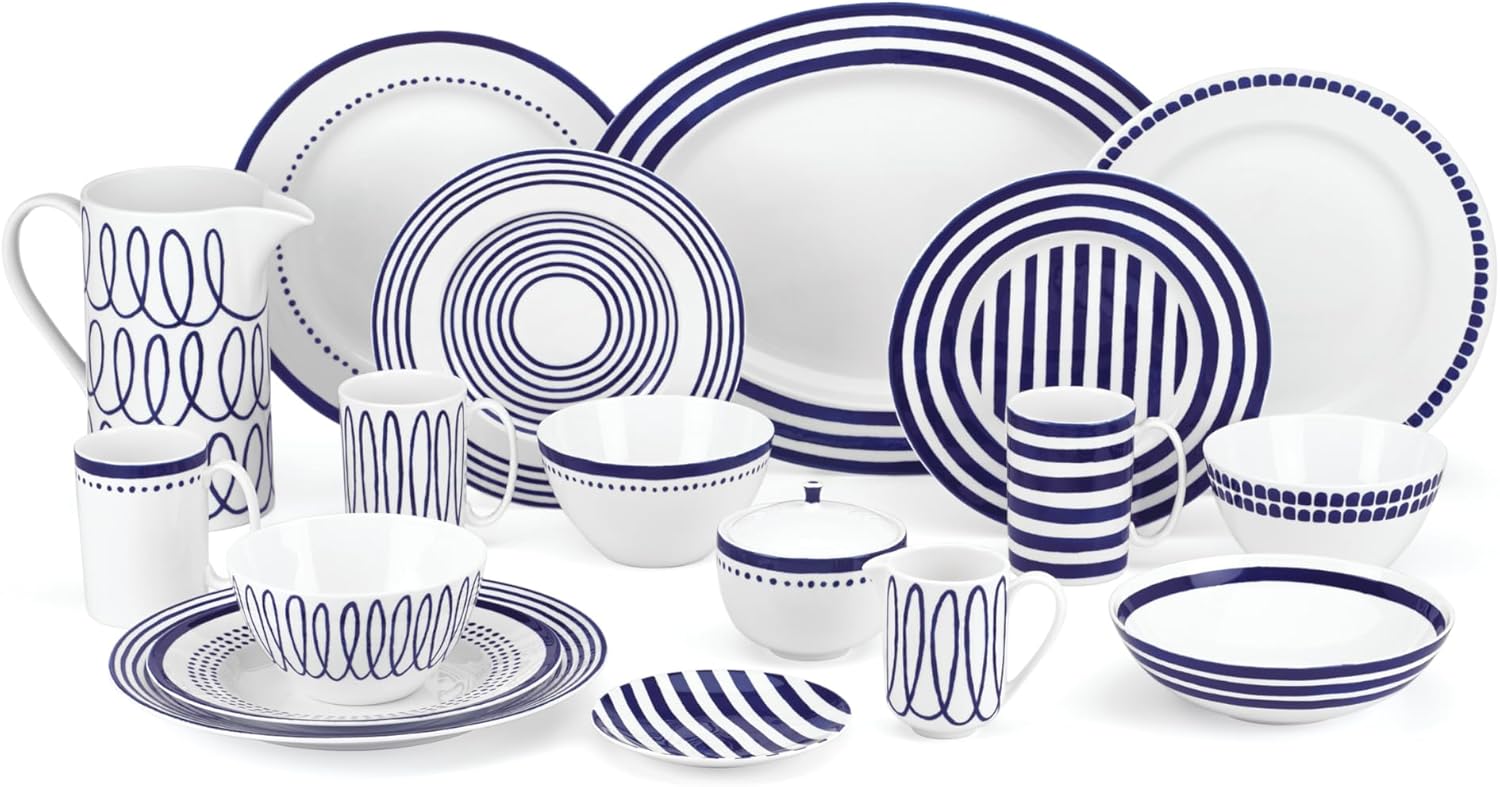 Because every meal — whether it is a multi-course homemade masterpiece or Chinese takeout and cupcakes — deserves a perfectly pretty place setting. Like this blue-accented medium serving bowl from the Charlotte Street Collection, crafted of microwave and dishwasher-safe durable white ceramic porcelain. Bon appetit]As part of the Lenox family of brands, kate spade new york brings playful patterns and chic color to your table to elevate the everyday. this revolutionary lifestyle tableware brand from clothing and accessory designer, Kate Spade, is both unique and playful. it gives fashionable women the ability to express their personal style at home. with crisp colors, bold patterns and clever takes on the traditional, the line is an exuberant and sophisticated way to bring fresh style to your table—and life.