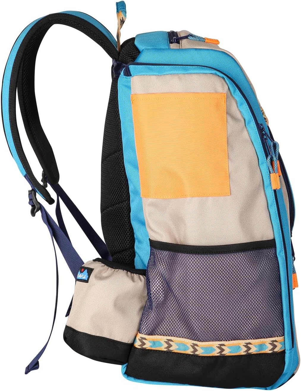 The KAVU Pacific Rimshot Disc Golf Bag is the perfect companion for your next disc golf adventure. Designed and tested by disc golfers worldwide, this bag is 100% engineered for good times and will make your game more efficient and enjoyable. With its semi padded backpack design and adjustable padded shoulder straps, you can carry all your equipment in comfort, whether you're out on the course for a few hours or all day.With its multiple storage options, you can easily store your discs, snacks, beverages of choice, and anything else you may need to come home as the winner winner chicken dinner. The disc storage pocket features removable padded dividers to keep your discs upright and organized, while the insulated main compartment, front and side pockets, and large side zip pocket provide ample storage space for all your essentials. The cinch straps, insulated drink cozy, and rope loop zip pulls make accessing your belongings a breeze.At KAVU, we are proud of our commitment to sustainability and protecting the planet. Our Klear Above spirit is reflected in everything we do, as we work to reduce our negative impact and increase the positive. And when you're carrying a KAVU Pacific Rimshot Disc Golf Bag, you're not just enjoying a great day on the course, you're also helping to make the world a better place. So make today a KAVU day and get ready for your time out on the disc golf course to be that much more enjoyable.