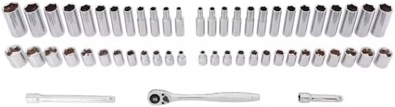 Kobalt's dedicated 3/8-inch drive mechanic's tool set includes a mix of fifty (50) deep and shallow, metric and SAE sockets The set features a 90-tooth ratchet and two (2) socket extensions (3-in and 6-in) All sockets feature a 6-point design to help prevent slippage and rounding of fasteners All tools are constructed from chrome vanadium steel and are heat-treated for strength and durability Socket size callouts are hard stamped for easy and long-lasting identification Professional grade, high-polish finish Contained in a large blow-molded case measuring 11.6in H x 15.75in W x 4.1in D for easy storage and transportation Meets or exceeds ANSI specifications