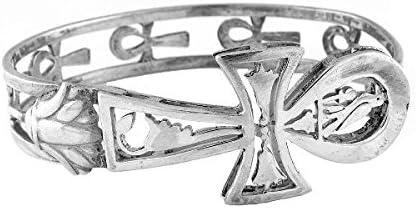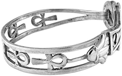 Hand made sterling silver bracelet featuring the ancient Egyptian God Horus perched within an ankh of life.