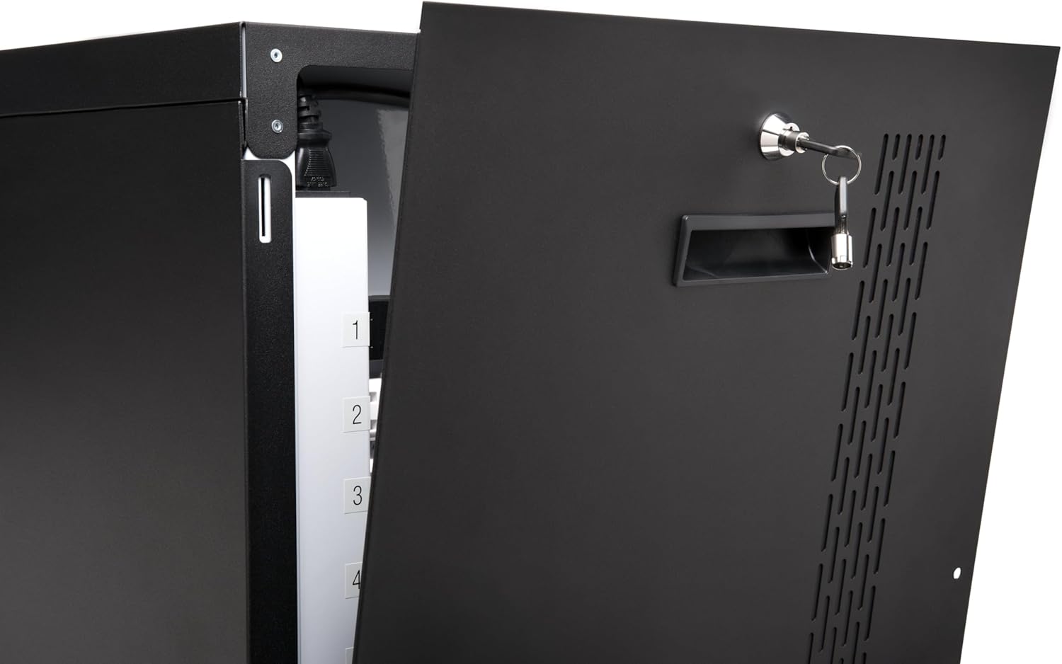 With more tablets, ChromeBook, and 2-in-1 hybrids being deployed in classrooms, healthcare offices and retail or hospitality businesses, the need for a solution that can store, charge and secure those devices overnight is greater than ever. The AC12 Security Charging Cabinet features slide-out drawers that provide an easier check-in/check-out experience for teachers or administrators. The cabinet holds 12 devices measuring up to 14”, and with the cabinet running on AC power, it can safely charge all 12 devices simultaneously. Certifications and Compliance: RoHS, REACH, Prop65, WEEE, Green Dot, FCC, C TUV US, TUV Bauart, TUV CB, CE, RCM.