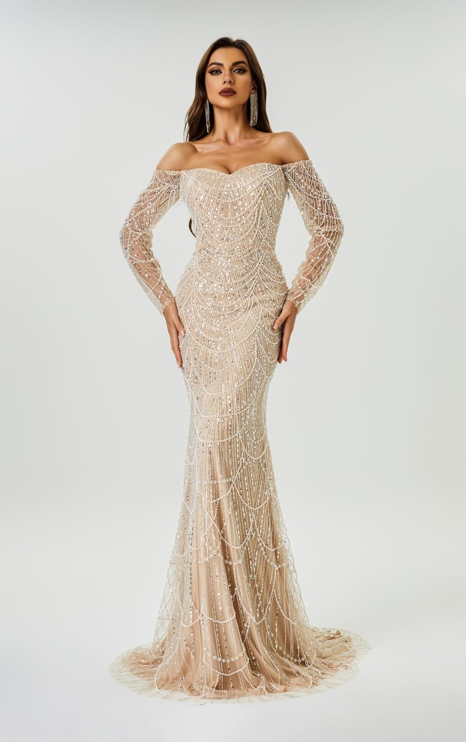 Note:Condition: 100% Brand NewFabric:Pearls and TulleStyle:MermaidHemline/train:Sweep TrainNeckline:Off The Shoulder.Sleeve length:Long SleeveAvailable Colors: Colors to choose (if you need please contact )Size: Custom-made or Standard Size (refer to the size chart) Closure at Back:Zipper.Style:Classic & Timeless, Chic & Modern, Gorgeous, Elegant, Charming, Nectarean Season:Spring, Summer, Fall It is better for you to offer your details Bust, Waist, Hips, Height with shoes ( = natural height + high heel shoes) for QC double checking sizes before shipping. We offer FREE repair service according to your own size BEFORE shipping so that the dress will fit you well. For Custom Made Dress, please complete the format below and offer us when you place the order.1.colour --2.Full Bust = _____ cm. 3.Waist = _____ cm.4.Hips = _____ cm.5.upper bust = _____ cm6.Under bust = _____ cm. 7.Nipple to Nipple = _____ cm8.Shoulder to Shoulder = _____ Return policyWe could not accept your return request if the dress issues are caused by yourself.Such as wrong size provided or wrong color selected.If you receive a defective dress or wrong size (wrong color,wrong dress),please contact us within 3 days after receive the dress..(Returned item must be completed,unused,unwashed with original tags and packaging.)Send your dress back,after we check it well,we will refund your money or we will resend you a new dress.Colour and style may vary by monitor. All the dresses don't come with the accessories displayed in the picture.