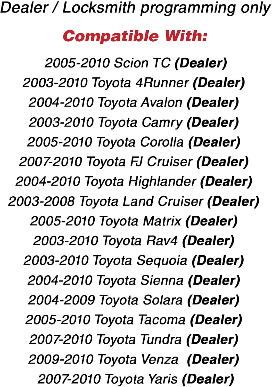 | Additional Features | Keylessoption replacement keyless entry remote. This remote has been fully tested with a new battery installed. Keylessoption uncut ingition transponder key. |