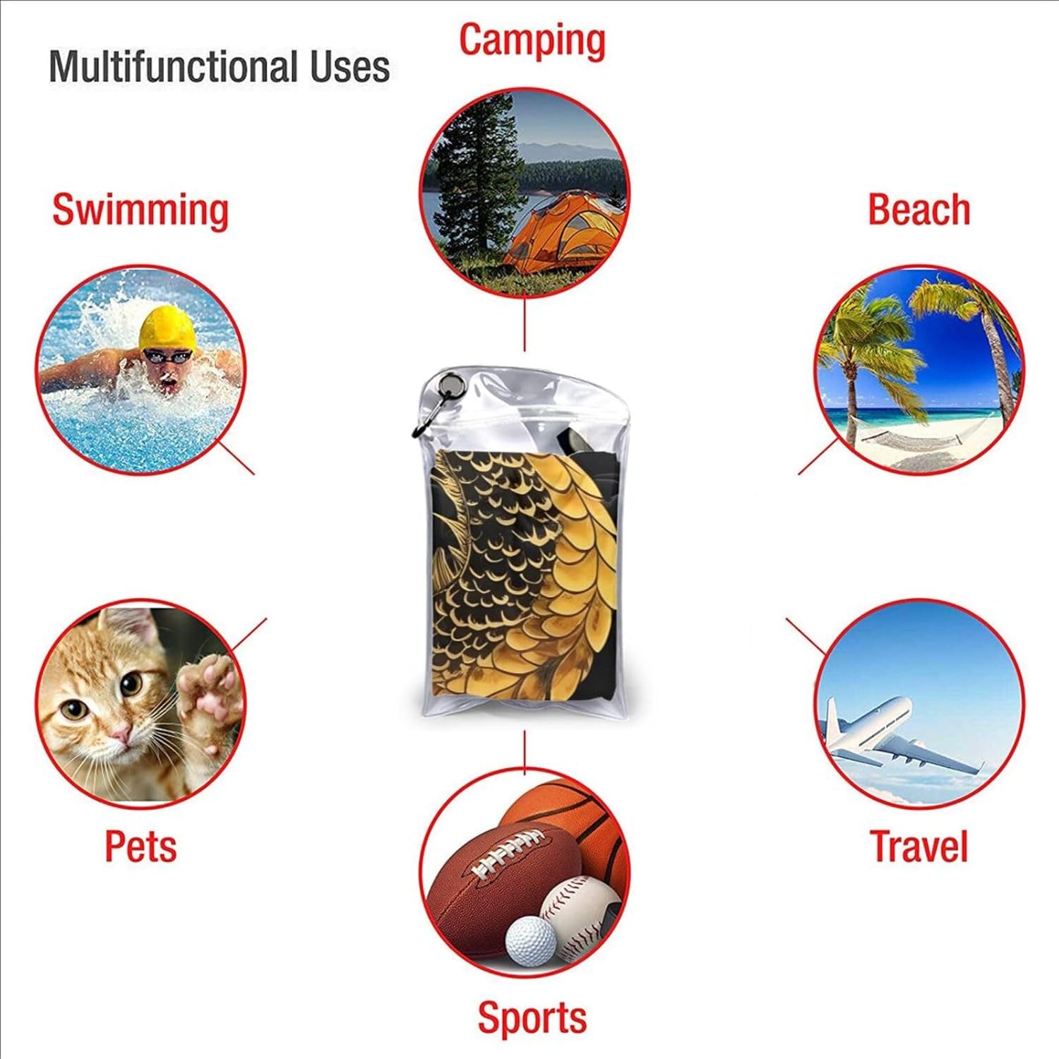designBackground Yellow Dragon compact towel for camping are designed with one-sided printing. The towels are equipped with special packaging bags and carabiners, which are convenient for packaging and hanging, and can be hung anywhere to dry quicklymaterialcompact towels for swimming is made of microfiber, which is more absorbent than standard towels, dries quickly, is lightweight, and small enough to easily fit the towel into a gym bag or backpackscene cotton towel for beach carabiner on the bag, can be attached or packed into your bag, the beach towel can also be used as a sports towel, travel towel, yoga towel or used as a beach, bathing, swimming pool, swimming, boating, sunbathing, mats for spa, sauna, water park, climbing, fitness, yoga, travel, camping, hiking, picnic, travel, outdoor and sports, etccomponentbeach blanket for swimming have buckle webbing, easy to hang and air dry, pvc packaging bag, equipped with a carabiner, easy to store and carrywashinglightweight towel for swimming machine washable, wash before first use, just hand wash or machine wash, air dry