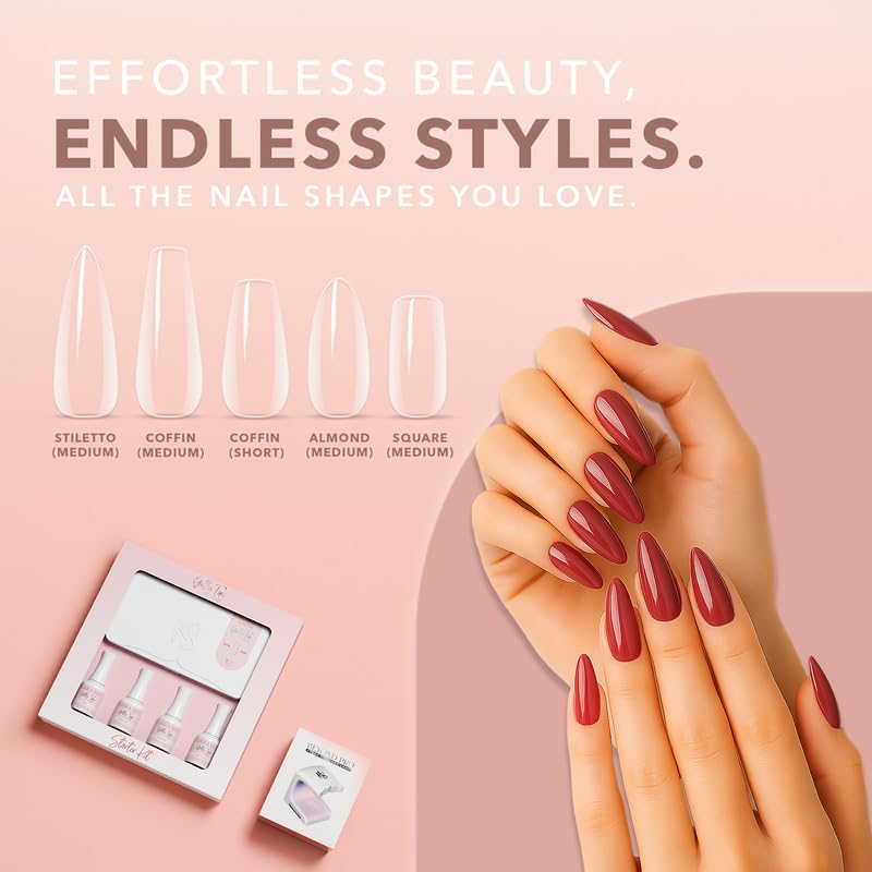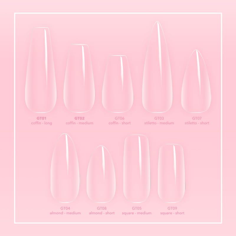 The easiest nail extension at your fingertips! Kiara Sky's Soak Off Gelly Tips are pre-shaped and ready to go. These innovative nail extensions provide a lightweight, easy-to-apply, time saving alternative compared to traditional nail enhancements. Specifically designed to last up to 3 weeks without any lifting or chipping! Our Gelly Tips are soak off and can be easily removed without damage, so you can switch up your manicure as often as you'd like! A salon style manicure has never been easier. Available Shapes: Long Coffin Medium Coffin Medium Stiletto Medium Almond Medium Square