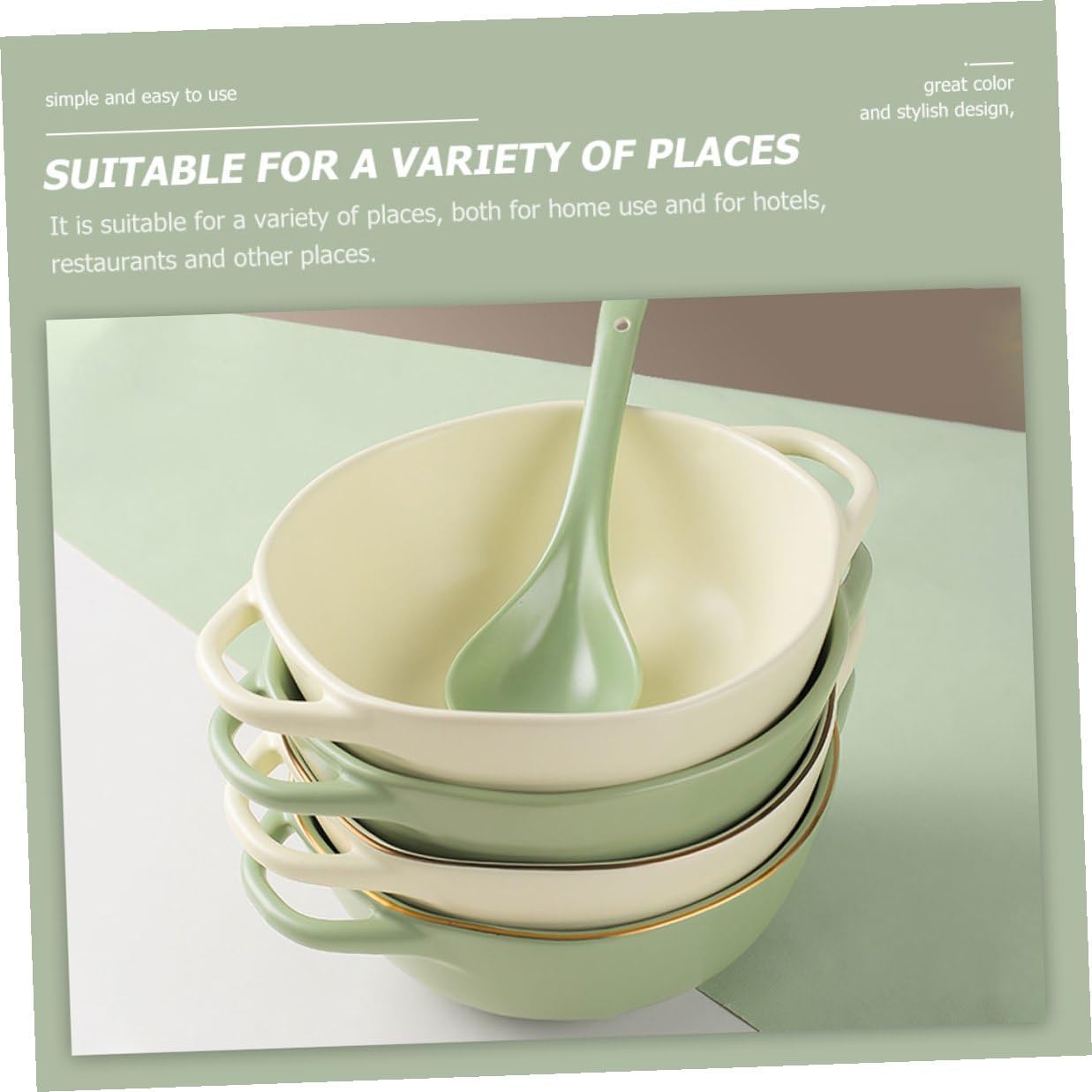 Package Include 1 x Salad Bowl Features -Material: ceramic -Product Info:Double ear baking bowl -Capacity: 1200ML Baking Dish - The nonstick surface makes your pizza easy to demould, which is beautiful and delicious thickened soup bowl. - Smooth surface without burrs, easy to clean, keep it clean and serving bowls ceramic. - The storage bowl is made of high-end ceramic material, not easy to deform. - The salad bowl is perfect for home, restaurant, hotel, cafe and professional use ceramic soup bowls. - Suitable for home, bakery, pizza shop, breakfast shop, food store, etc bowls for kitchen.Goods Descriptionserving bowls ceramic It is small and , which can make your food look more tempting and delicious.ceramics bowls Are you looking for a practical and baking plate? Are you looking for a sturdy and reliable steamed food dish with multiple functions? If yes, please check our products carefully! Our multi-functional bowl is made of will surely meet your needs
