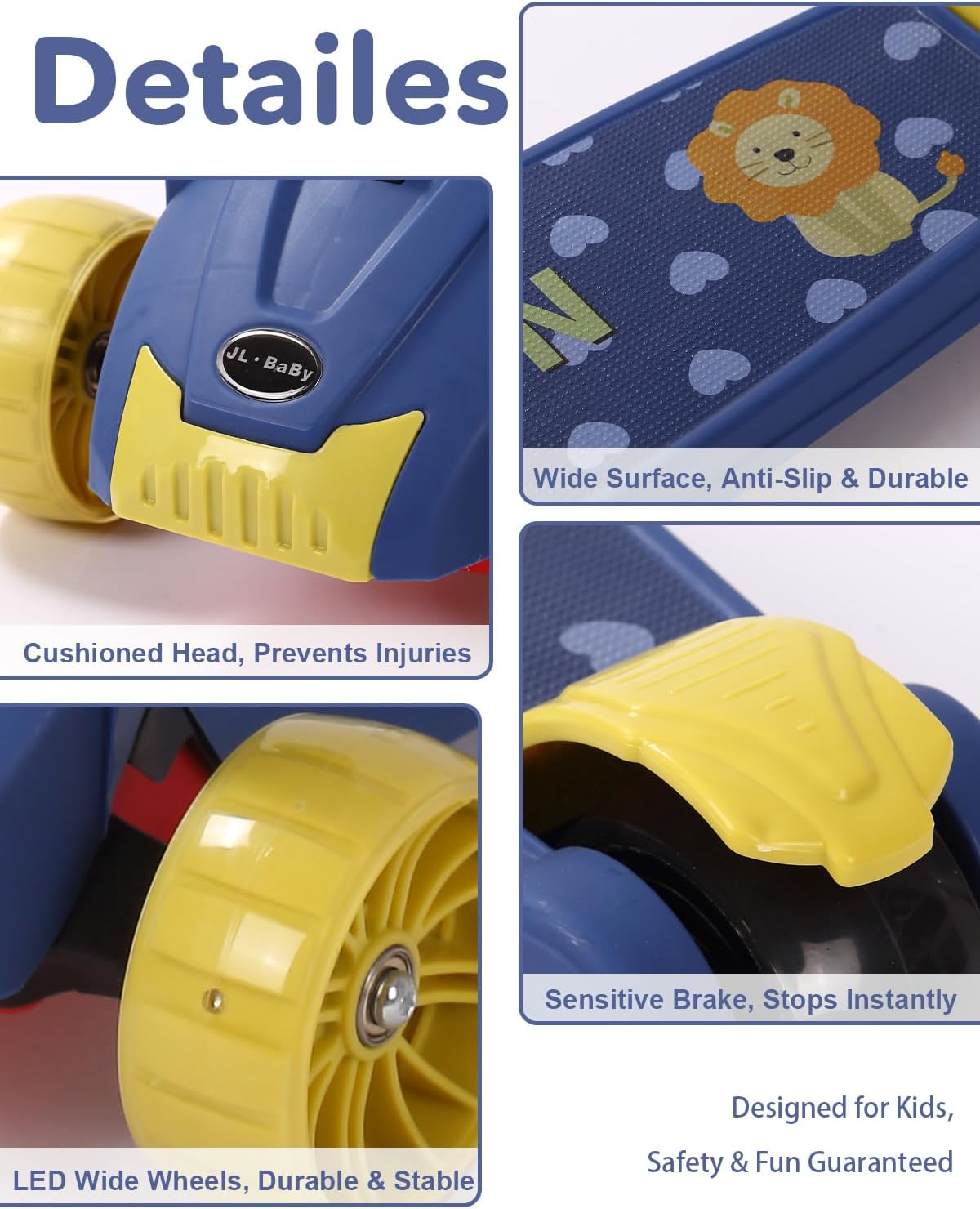 | Other Special Features of the Product | Adjustable Handlebar Height, Built-In Speaker, Foldable, Light Up Wheels, Wide Platform |