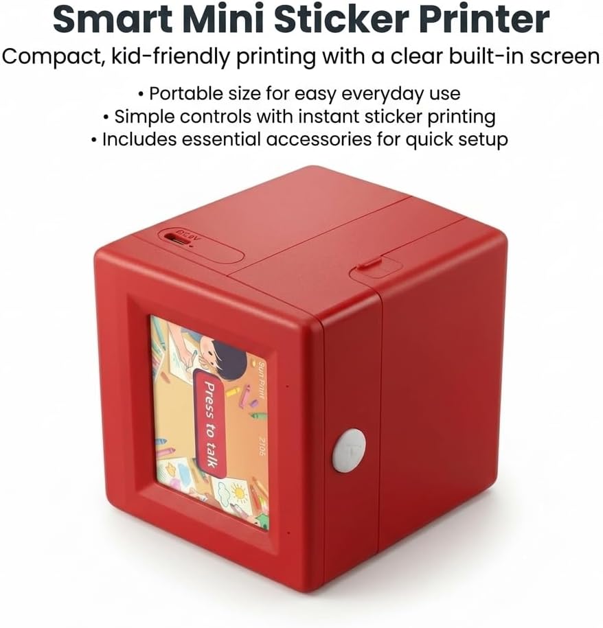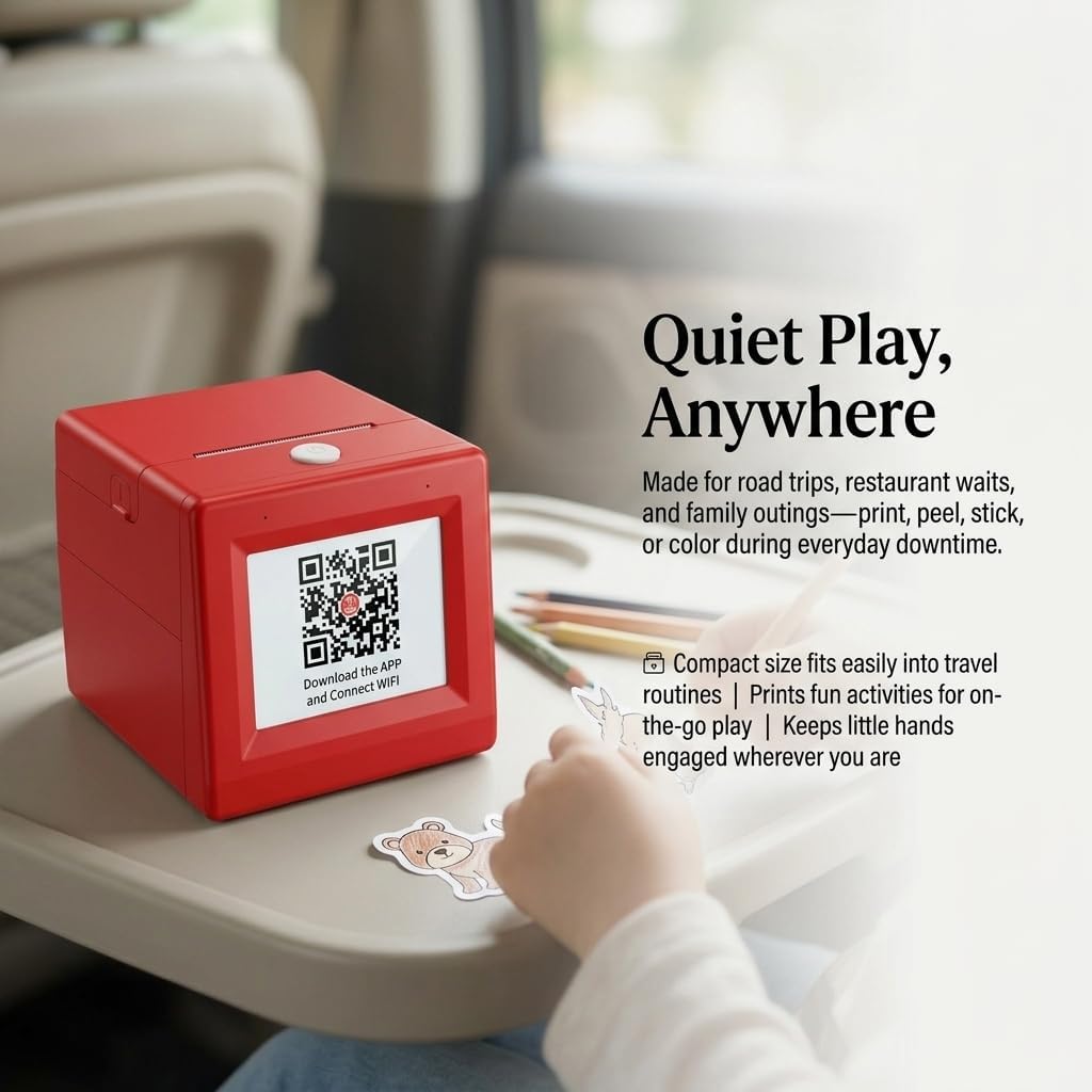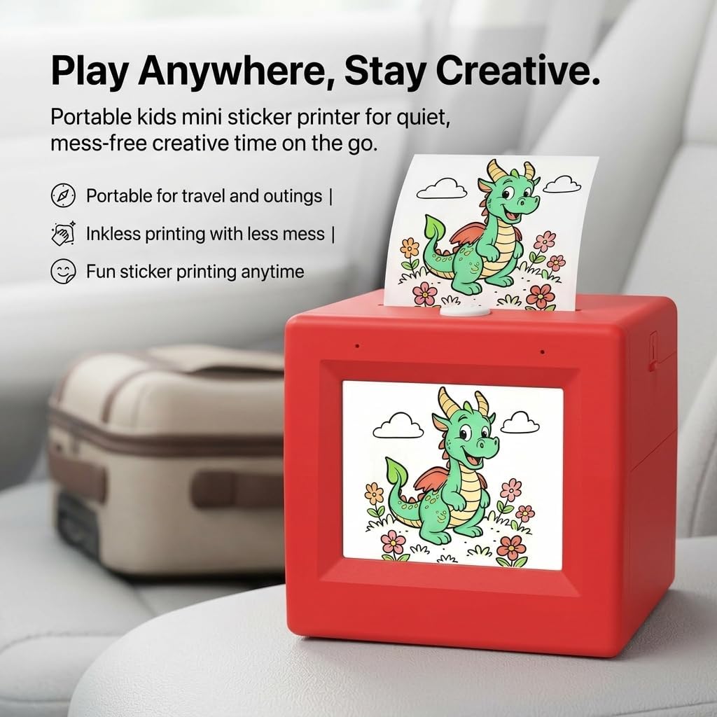 Make waiting time more creative with a portable kids sticker printer designed for everyday outings. Instead of handing over another screen, give kids a simple way to print, peel, stick, and color wherever the day takes you. The compact body fits easily into a bag, while inkless thermal printing helps keep use cleaner and easier for parents. A built-in screen and easy press-to-print design support quick operation when you are in the car, at a restaurant, visiting family, or traveling on weekends. Compatible with thermal paper, sticky paper, and two-color paper, this mini printer turns one quick print into more ways to play, decorate, and create.