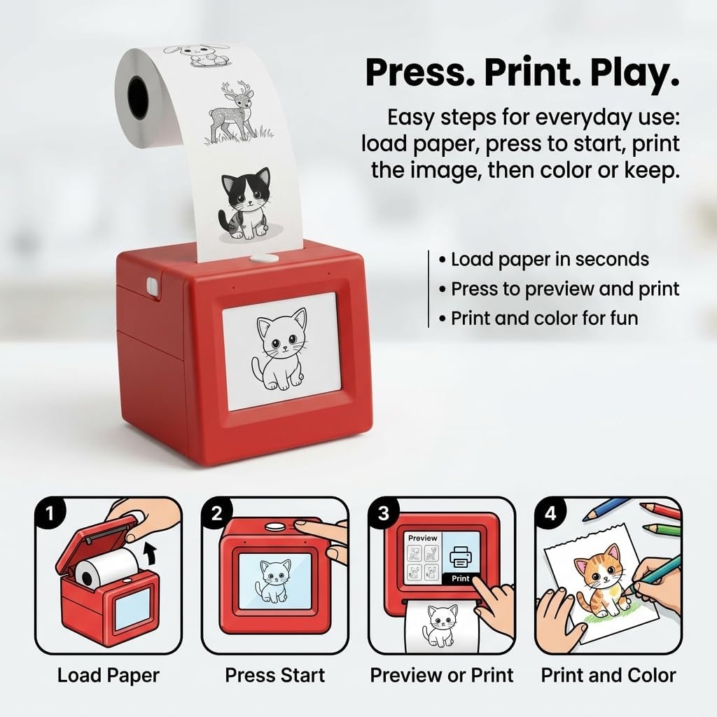 | Other Special Features of the Product | Child-friendly Interface, Coloring Activity, Instant Thermal Printing, Portable Design, Voice-to-image Generation |