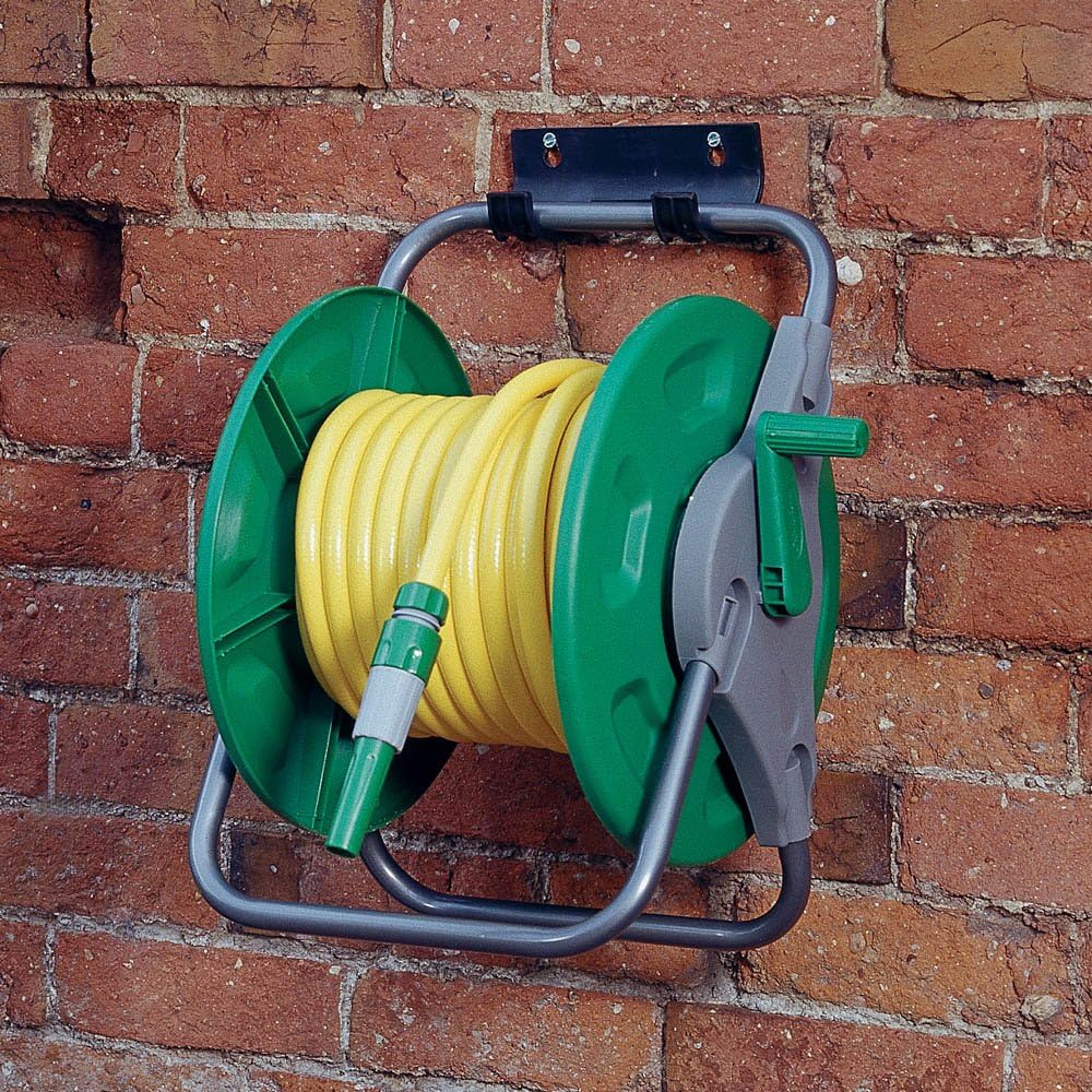Hose Reel stores up to 60m of half inch hosepipe.