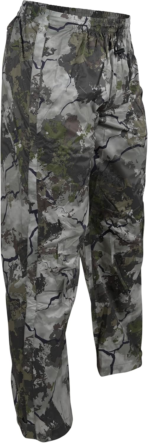 King’s Camo Men’s Hunter Climatex II Rain Pant The King’s Camo Men’s Hunter Climatex II Rain Pant is lightweight at 10.5 oz. and built with a ripstop poly finish. It’s 100% waterproof and windproof. Comes with two full length leg zippers for easy on/off. An elastic drawstring waist makes a perfect comfortable fit. It also packs into the inside mesh pocket. FEATURES: - Weight: 10.5 oz. - 100% Waterproof - Full Length Leg Zippers - Lightweight & Durable - Drawstring Waist WHY WE MADE THIS The King’s Camo Men’s Hunter Climatex II Rain Pant is an affordable high-performing 100% waterproof pant in the Hunter Series. Built to be lightweight and shed water, this pant can be quickly deployed from your pack to keep you dry when they mountain storms quickly roll in. Built with ripstop poly, mesh lining, & waterproof fabric and seams throughout, this piece will keep you dry and comfortable during the nastiest days of the season.