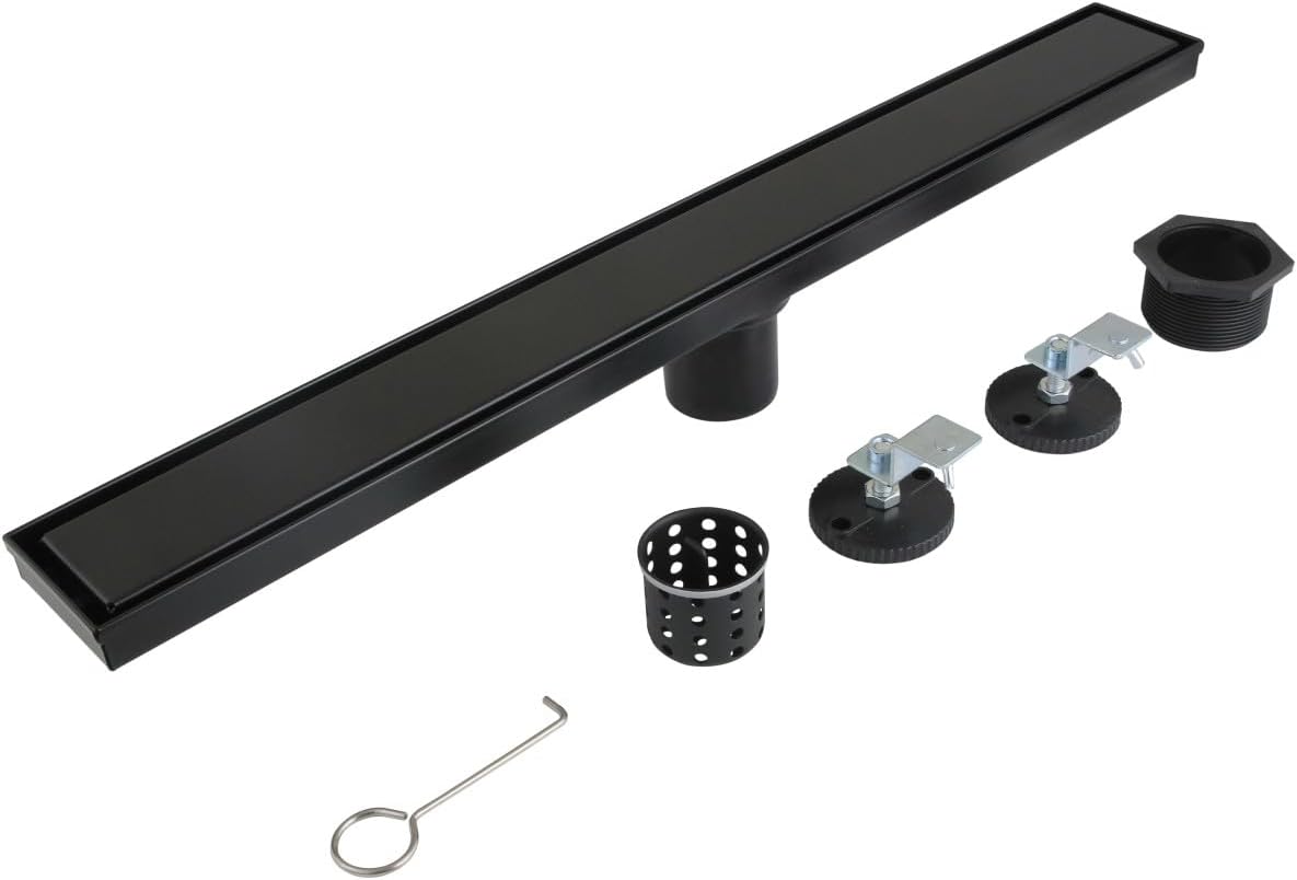 Upgrade your shower experience with our Watercourse collection Linear Shower Drain with Reversible Tile Insert and Flat Grate. Crafted for durability, this rectangular shower drain is constructed from high-quality stainless steel, ensuring long-lasting performance in your bathroom. Maintenance is a breeze with the removable drain basket, which traps hair and prevents clogging. Compatible with 2" drain outlet pipes, the drain comes with a cover, adaptor, hair basket, and drain body, offering a comprehensive package for easy installation. Designed to perfectly fit Kingston Brass drain base BSFL02B or similar models, our Stainless Steel Linear Shower Drain combines functionality and elegance, making it an essential addition to your shower space.