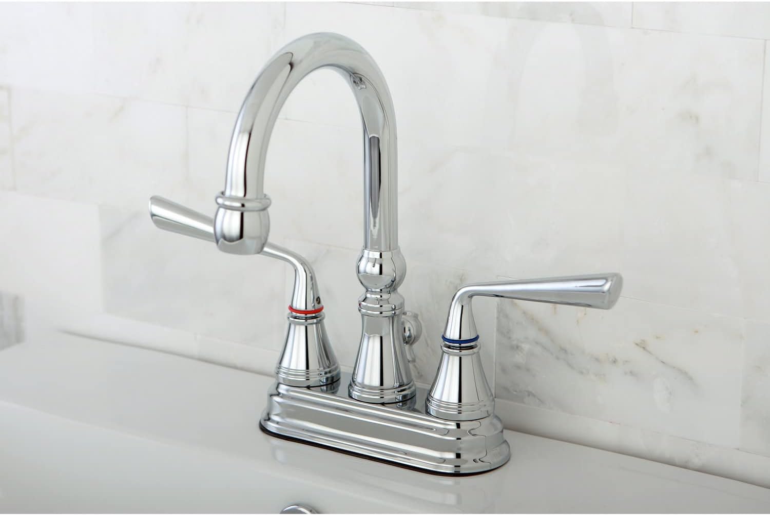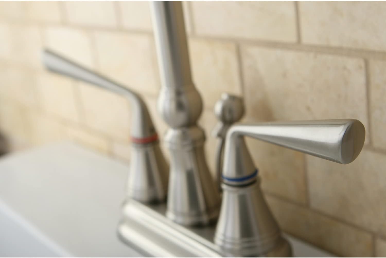 Product Description Emboldened by stately design, this faucet reflects an exquisite ambiance of stylized luxury with its contemporary flair. Centerset bathroom faucets are ideal for smaller bathrooms and feature an easy 3-hole installation. The Silver Sage 4-inch centerset bathroom faucet and its featured sturdy brass construction and premium polished chrome finish are guaranteed to glamorize your home's modern ensemble for years to come. Engulf your home with the transitional flair this faucet presents. A matching finish drain is also included. From the Manufacturer This Silver Sage widespread lavatory faucet from Kingston Brass is derived from the traditional style of the early 20th Century. This faucet's sleek architecture consists of a deck mount setup with a 4" centerset design. The body is fabricated from solid brass for durability and long-lasting use. The color finishes are available in polished chrome, polished brass, oil-rubbed bronze and satin nickel for resistance from scratches, corrosion and tarnishing. The double lever handles allow for easy management of water volume and temperature. The water function features a ceramic disc valve for droplet-free functionality with the water measured 2.2 GPM (8.3 LPM) and a 60 PSI maximum rate. An integrated removable aerator is inserted beneath the spout's head piece for conserving water flow. A 10-year limited warranty is provided to the original consumer.