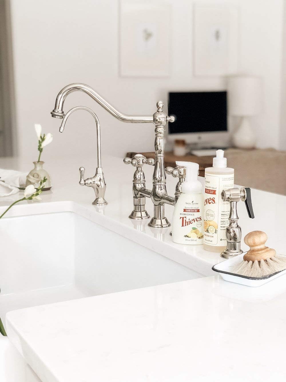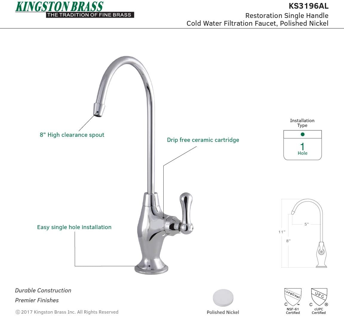 Allow this faucet to provide you with instant, crystal clear drinking water while reducing plastic waste. Ergonomically designed, it will enhance your kitchen's traditional theme while adding functionality. Use with an under the counter water filtration system.