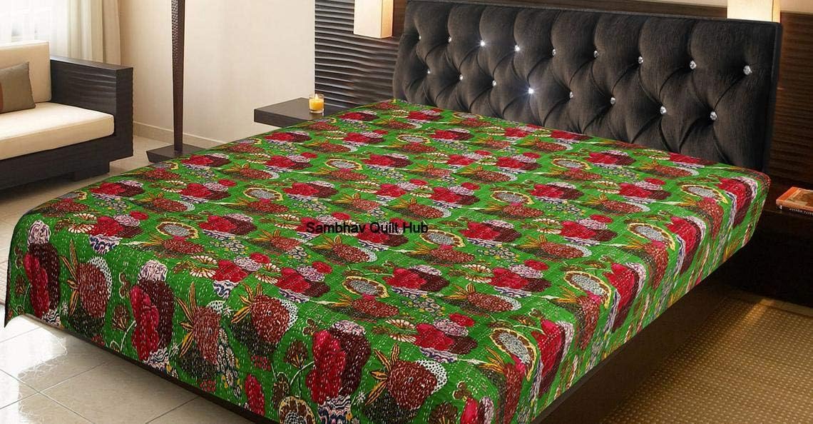 Made with 100% cotton and natural vegetable colors. This piece is of art is completely hand stitched by Women artisan in Rajasthan, India. It can make any room alive with its vivid colors, stunning Paisley print and embroidery, made using traditional and famous kantha hand embroidery method. Made from two thin layer of cotton fabric make this piece of art irresistible and also very comfortable. Adding to it's style, this kantha quilt is reversible and both sides can be used. Kantha is still the most popular form of embroidery practiced by rural women.typically use old saris and cloth and layer them with kantha stitch to make a light blanket, throw or bedspread. These cotton lightweight "Quilts" with a beautiful and colorful Paisley design can be used as 1. Bedspread , Bedding Throw , Blanket Or Quilt 2. A Summer Bed Cover 3. A Throw 4. A Fabulous Picnic Rug 5. Nice Bedroom Quilt , This can fit to a 90 x 108/60*90 inch's wide King/Twin size bed as blanket or throw or can easily fit as bedspread / bed cover to King/Twin bed .