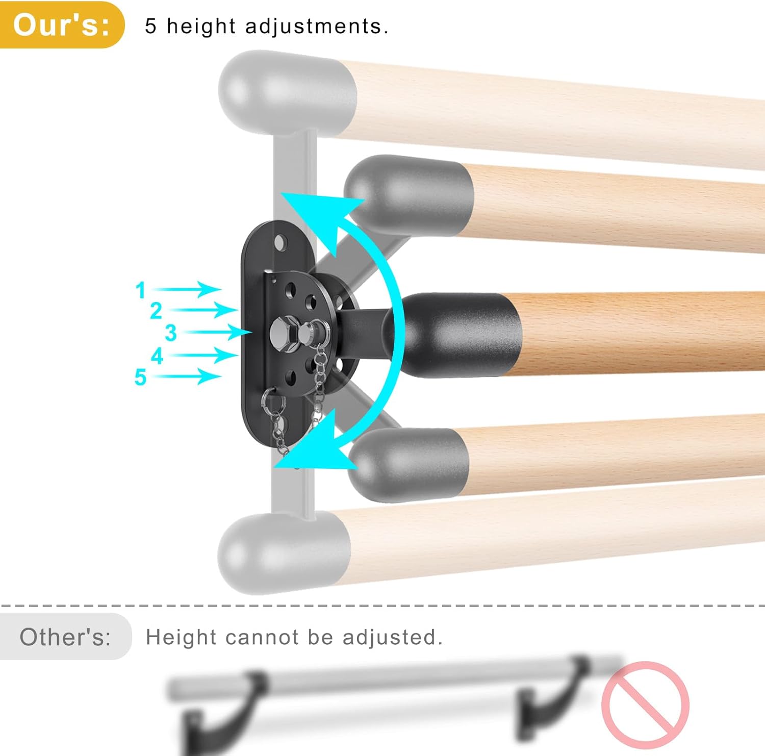 Kipika Single Bar Traditional Wood Fixed Height Wall Mount Ballet Barre System 1m