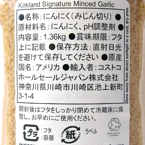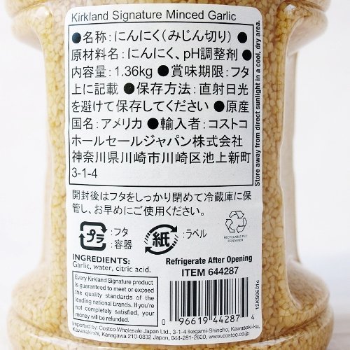 KIRKLAND Kirkland Minsuto California garlic 1.36kgX4 pieces chopped garlic