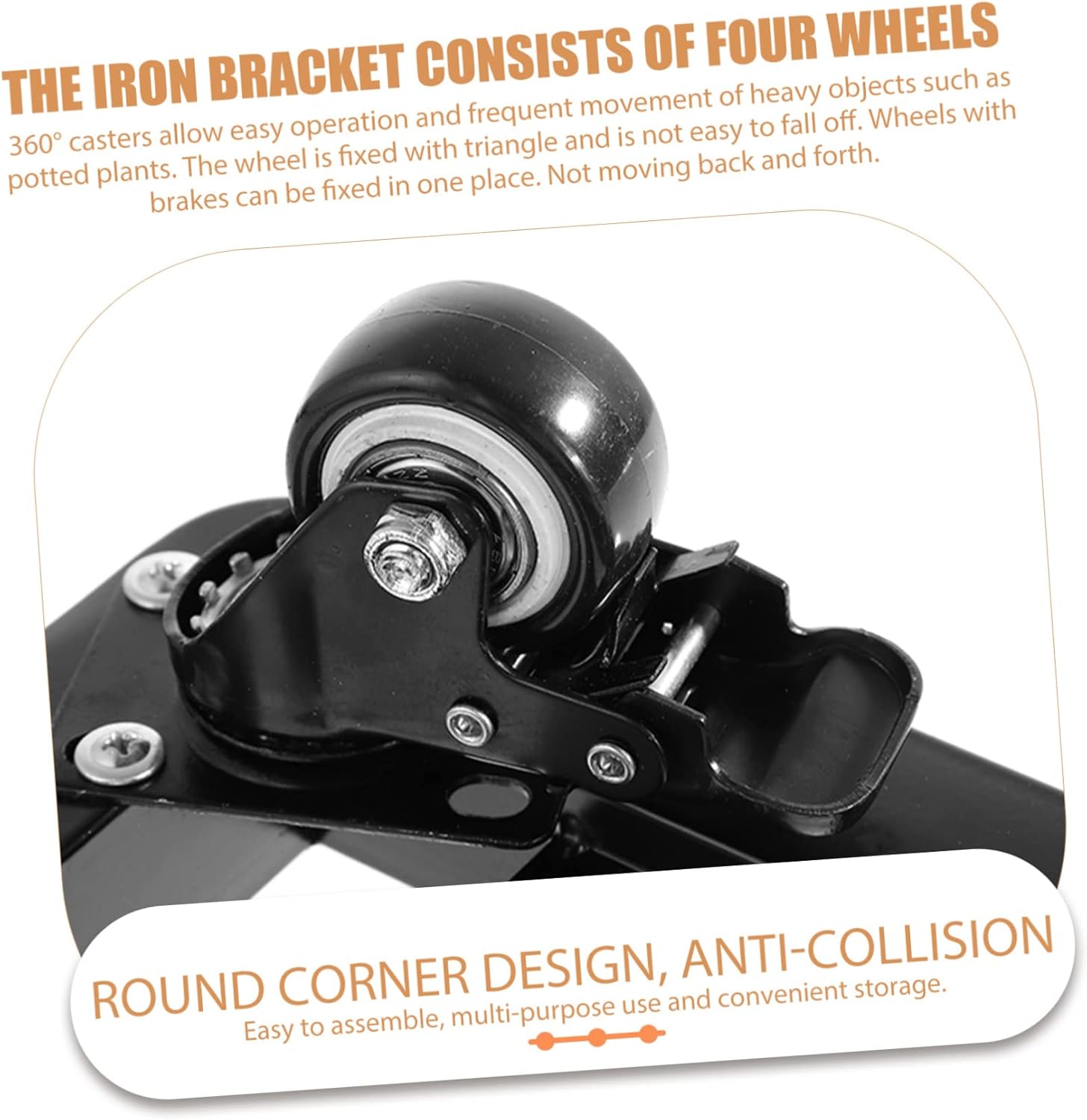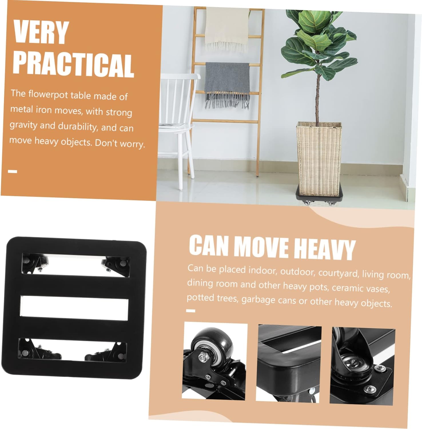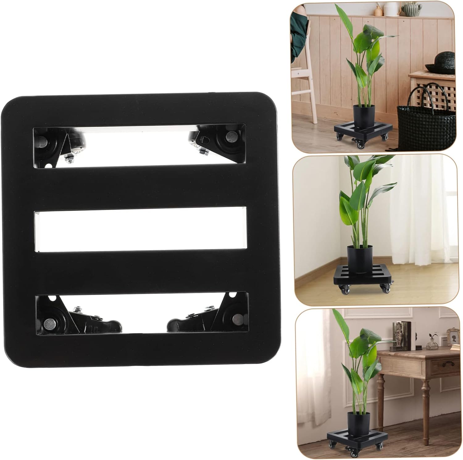 Package Include 1 x Flowerpot Tray Characteristics -Material: Iron Flowerpot Base - The iron bracket consists of four wheels. 360° casters allow easy operation and frequent movement of heavy objects such as potted plants. The wheel is fixed with triangle and is not easy to fall off. Outdoor Plant Pot Tray - You can use it for moving your heavy plants in the garden, and the large vases Movable Flowerpot Tray. - The flowerpot table made of metal iron moves, with strong and durability, and can move heavy objects. Don't worry Thickened Flowerpot Stand. - This plants stand with wheels is suitable for both indoor and outdoor use Flowerpot Stand. - This is a movable flowerpot tray with all direction wheels, which is labor-saving for you to use Large Planters for Indoor Plants.Goods DescriptionPlant Stand With Wheels Round corner design, anti-collision, prevent the transplant of wooden bowl caused damage to the foot.Outdoor Plant Pot Tray This is a nice tray, which is very practical for you to use.Bonsai Moving Tray It is movable, can use it to move the planters in the garden or indoor