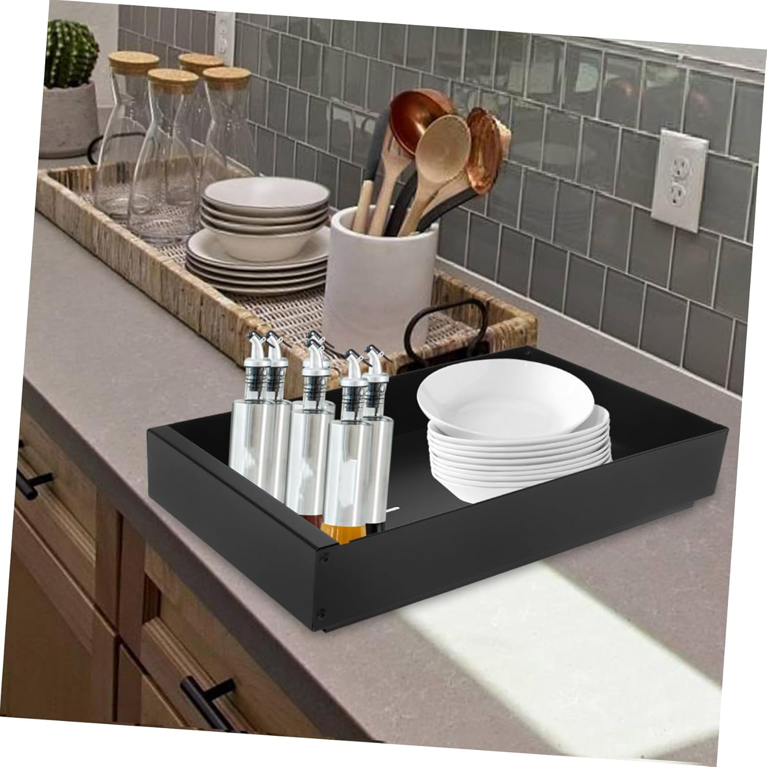 Package List 1 x Pull Out Cabinet Shelf Features -Color:Black expandable slide out drawer -Ready to use: no installation required, simply place the organizer in your cabinet and start using it immediately pull out cabinet organizer -Material:Carbon Steel slide out drawers -Spacesaving organizer: efficiently stores bowls, plates, and other kitchen items, optimizing the use of your cabinet space cabinet slide out shelves -Size:42.00X26.00X6.00cm/16.51X10.22X2.36in cabinet extender shelf pull out -Easy access slideout: the pullout feature allows for smooth and easy access to your stored items, enhancing convenience in the kitchen slide out drawer organizer -Draining rack: keeps your dishes elevated for draining and drying, ensuring a clean and organized kitchen sliding drawer organizer -Adjustable storage basket: modify the size of the compartments to fit various dish sizes, providing a flexible storage cabinet slide out drawersGoods Descriptionslide out pantry shelves The pull out cabinet organizer includes a drainage system, allowing your dishes to dry quickly and efficiently.slide out drawer The cabinet extender shelf pull out is for those looking to optimize their kitchen storage space.purse shelf organizer The cabinet pull out shelves are designed to fit seamlessly into your existing cabinetry, providing a sleek and modern look