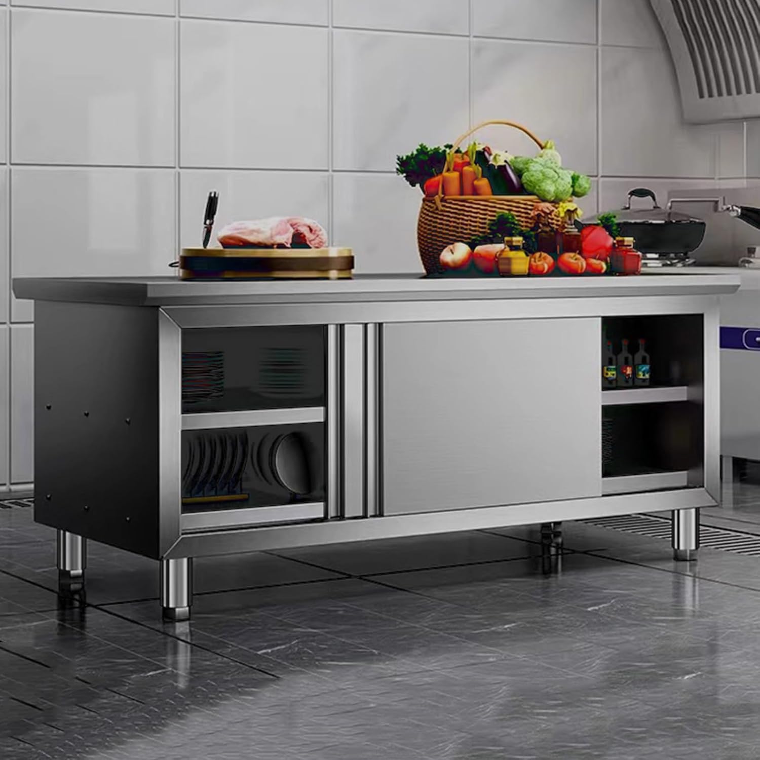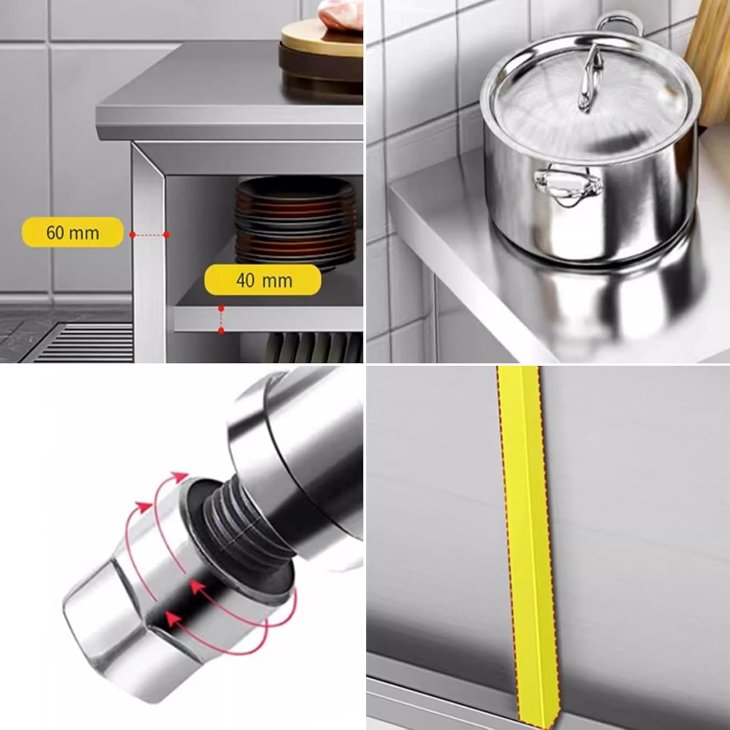 Our stainless steel workbench is suitable for a variety of spaces and is a must-have for the kitchen, laundry room, garage or anywhere it is needed. Stainless steel workbench, cleaning is a breeze, just wipe it gently with a cloth or paper Product name: Utility workbench Material: Stainless steel Size: 80 * 50 * 80 cm (31.5 * 19.7 * 31.5 inches) 80 * 60 * 80 cm (31.5 * 23.6 * 31.5 inches) 100 * 50 * 80 cm (39.4 * 19.7 * 31.5 inches) 100 * 60 * 80 cm (39.4 * 23.6 * 31.5 inches) Product List: Workbench x1 (other items not included) Note Tips: Please note that there may be a little color difference due to different screen displays Manual measurement, there may be an error of 1-3 cm, please understand! Due to stainless steel products, there may be slight welding points and scratches, please understand