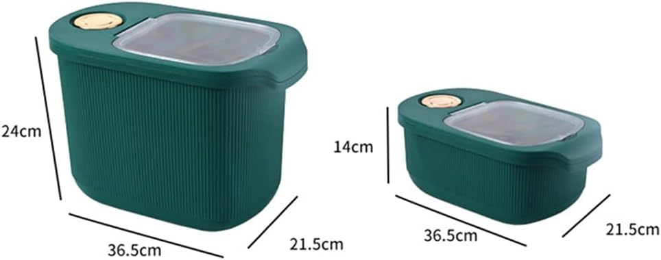 Features: Made of Plastic materials, solid and durable, safe for long service time. Keeping food dry, fresh and clean, avoid foods contamination with . Reusable food storage container that are economic and environmental friendly. Sealed transparent container, suitable for storing sugar, tea, grain, seeds, dried fruits, nuts, pet food, and more. You can pile them for space-saving, an useful gadget for your kitchen. Specification: Material: Plastic Color: : White,Green Size: 36.5*21.5*14cm, 36.5*21.5*24cm capacity:5kg,10kg package includes : Rice Storage Container *1(excluding other demo products) notes: 1. Due to manual measurement, please allow 1-3 cm error. 2. Due to different computer screen and display settings, the actual color may be slightly different from the picture.Thanks for your understanding! Please allow 1-5mm differences due to manual measurement.