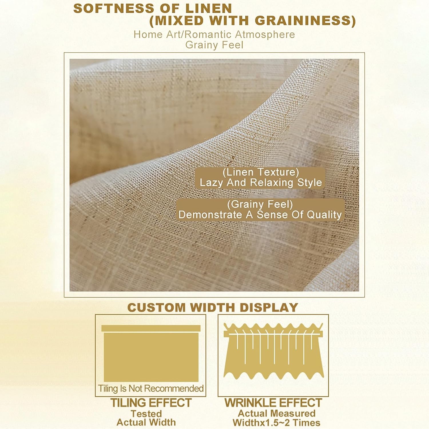 Kitchen Curtains Linen Tier Curtains Bathroom Window Curtains Short Small Cafe Curtains Faux Linen Textured Small Cafe CurtainsProduct DescriptionLight Fitering:- faux linen semi-sheer cafe curtains have just the right thickness to softly filter out glare sunlight and offer just the right amount of privacy. Keep light and airy which allows the curtains to flow nicely in a subtle summer breeze without any stuffy feeling.Linen-Poly Blend:- Tightly woven linen-poly blend textured fabric has superlative qualities of soft,ECO friendly,breathability, durability and long lasting with top-quality stitching.Decoration:- faux linen short curtains are not only suit for the kitchen window,but are also the perfect addition to cafe,bathroom,bay windows,closet,laundry room, loft,basement,cabinet,cabin,RV camper or any small windows.Soft fabricFarmhouse curtains are crafted from cotton linen fabric. soft and durable, natural and healthy material make the panels more draped and aesthetic..Natural and Brown StitchingThe elegant and stylish patchwork style creates a cozy and warm atmosphere, adding a touch of modern and bohemian style to your room.Premium workmanshipFarmhouse cotton linen curtains are crafted in premium workmanship and cut neat, thread trimmed and wrinkle-free, not easy to fray and fade.Please Note:1. The Backs of These Curtains Are Not Patterned 2. Due to the light and screen setting difference, the actual color may be slightly different from the pictures.3. Please allow 1-3cm error due to manual measurement, make sure you do not mind before you ordered.