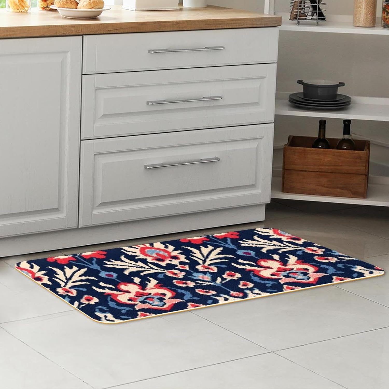 Kitchen Rugs Non Slip SpecificationSize: Available in two sizes, Large kitchen floor runner rug: 40x150cm/15.7x59in, Small kitchen floor runner rug: 40x75cm/15.7x29.5in; thickness 5mmWeight: 1000gMaterial: Polyester surface with bottom TPE material, the bottom is impermeable.Shape: RectangularPackage: Two kitchen floor mats cushioned anti fatigue in different sizesWashable: no fading, no shrinking, no deformationClassic Printing & Dyeing: single-sided printing, realistic exquisite patternsVersatile Use: Kitchen mats and rugs, wash room floor mat, hallway runner rug carpet, laundry room rug, indoor entrance doormats, bathroom rug, bathtub mat, nursery rug pad, door welcome mat, entryway rug runner, can be placed in any doorway.Function·Anti-slip, providing more safety when working in the kitchen·Absorb water, oil, and liquid, to prevent penetration into the floor and protect the floor·Keep the kitchen dry and hygienic·Standing for a long time does not hurt the legs, relieves leg fatigue·Ideal decoration for homeWarm TipsDue to the large size of the absorbent kitchen runner rug for in front of sink, the non skid kitchen runner rug need to be folded during transportation. If you find that the kitchen carpet has creases after you receive it, please lay the floor rug flat. The creases will disappear automatically after 1-2 days, or the creases can be removed by cleaning and drying the door standing mat.100% after-sales GuaranteeIf you have any questions during the use of the kitchen runner rug for sink, please feel free to contact us, we will reply to you within 24 hours.