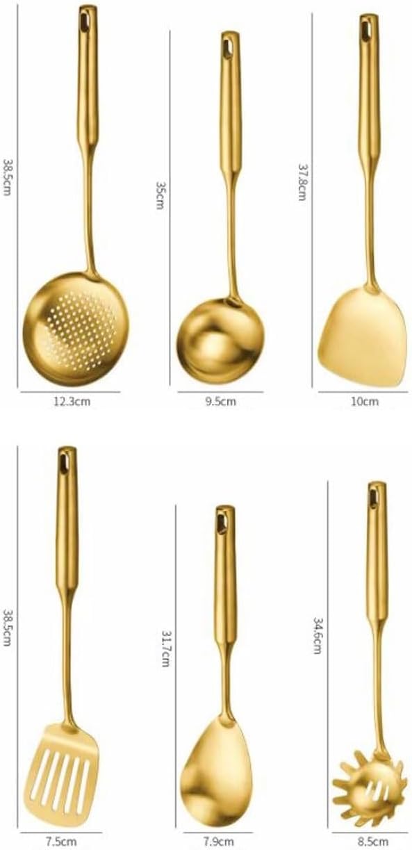 Product Name: Kitchen Tools Spoons for Cooking Spatulas Cooking Utensils Sets Cookware Dining Gadgets Stainless Steel Spatulas Spoons 7 Pieces Exquisite Cooking Utensils, let your life have a style, and can be a gift from-friends and relatives. Material: 304 Stainless Steel. Cooking Utensils Size: Spoons 35*9.5cm, 31.7*7.9cm. Slotted Spoons 38.5*12.3cm, 34.6*8.5cm. Cooking Spatulas 37.8*10cm. Slotted Spatulas 38.5*7.5cm. Storage Shelf 43.5*15.5cm. Package: Cooking Spoons * 2 Slotted Spoons * 2 Cooking Spatulas * 1 Slotted Spatulas * 1 Storage Shelf * 1 We assure you that our products will give you satisfaction. If you have any questions about the product, please contact us.