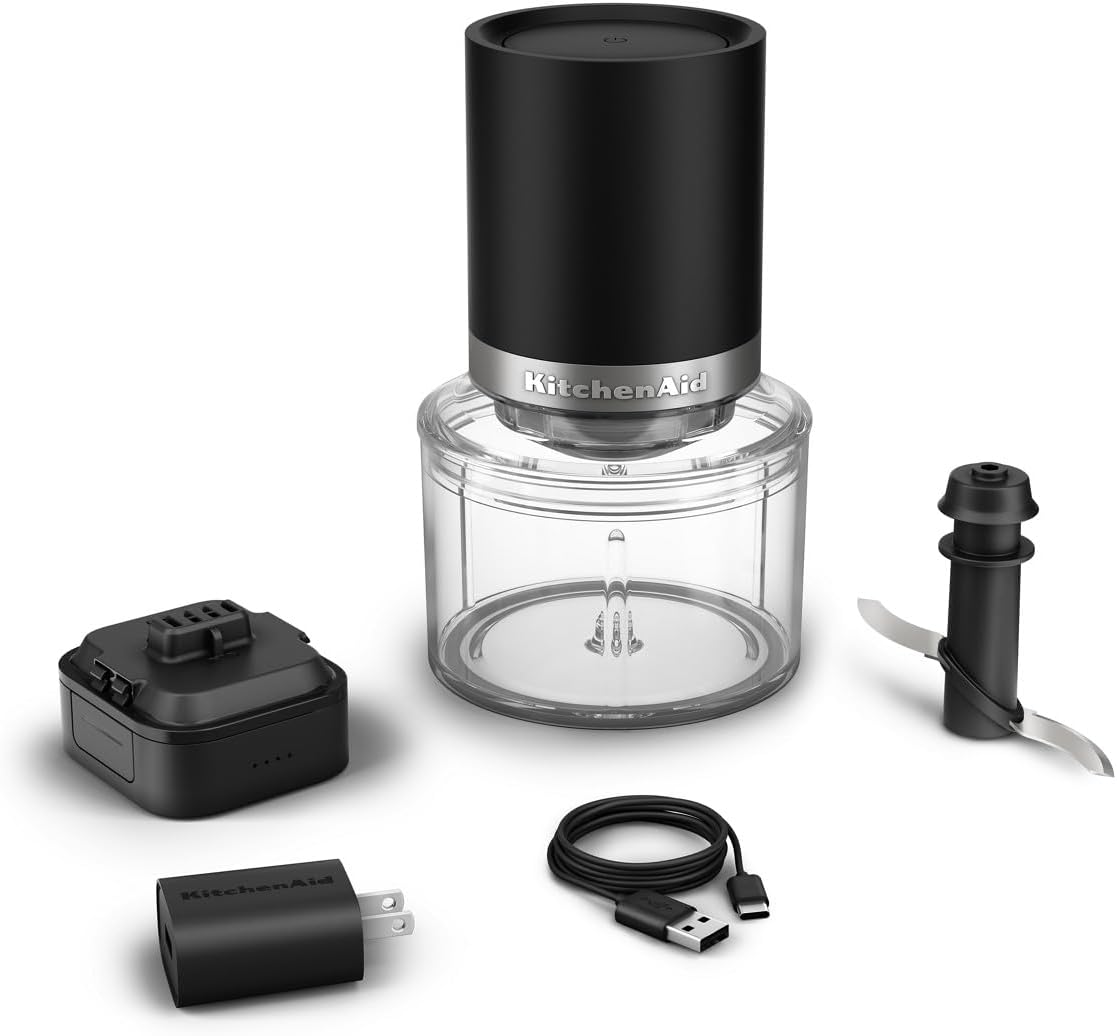 The power to make. The power to move. Create anywhere using the KitchenAid Go™ Cordless Top Down Chopper, with 3.5 cup bowl. Powered by a rechargeable 12v MAX removable battery (sold separately, model KRB12), the cordless top down chopper delivers up to 24 minutes of continuous run time* and performance. Chop, mix and puree in one bowl for easy prep. *Maximum initial battery voltage (measured without a workload) is 12 volts. Nominal voltage is 10.8. Actual run time will vary based on recipe. Battery life impacted by factors such as battery age and use.